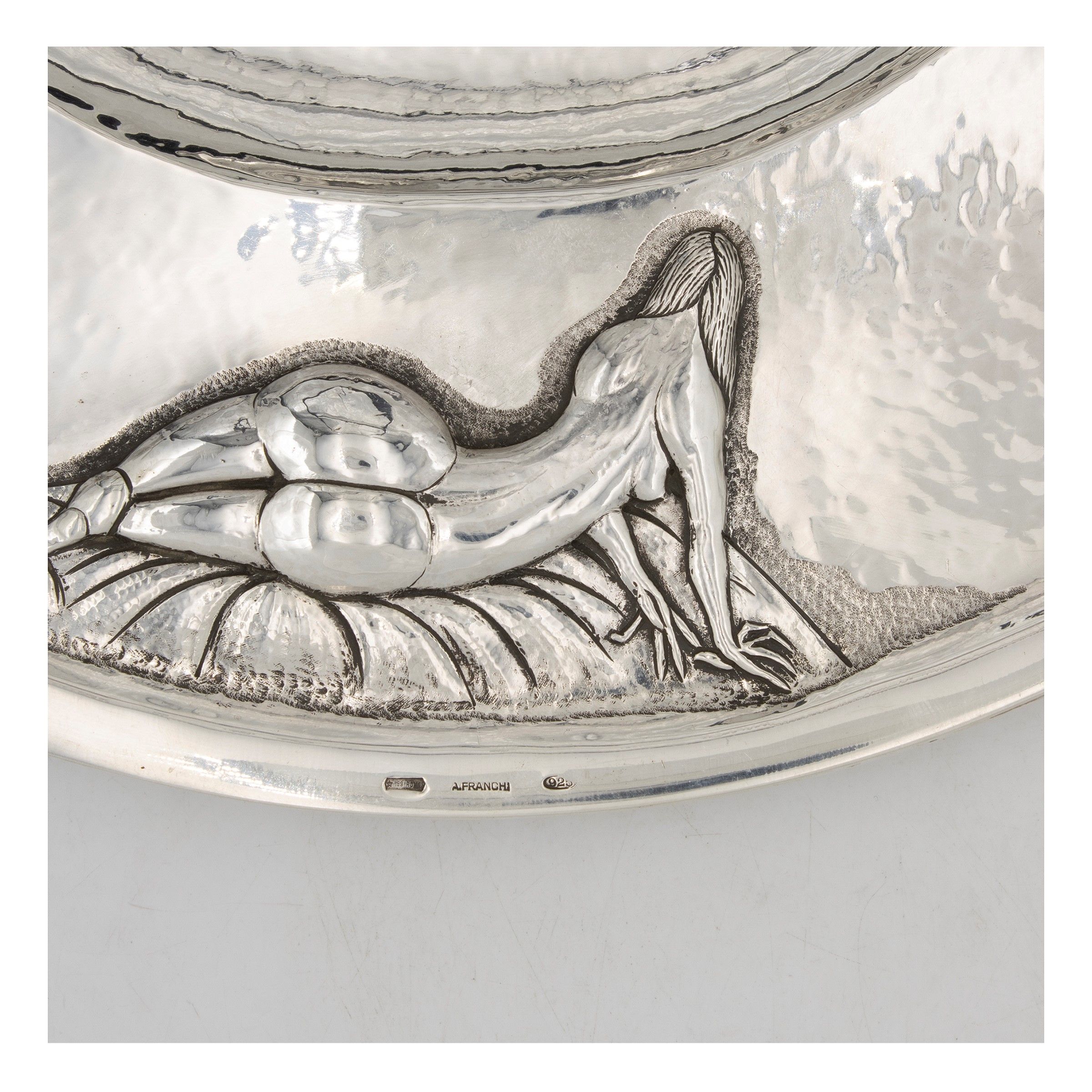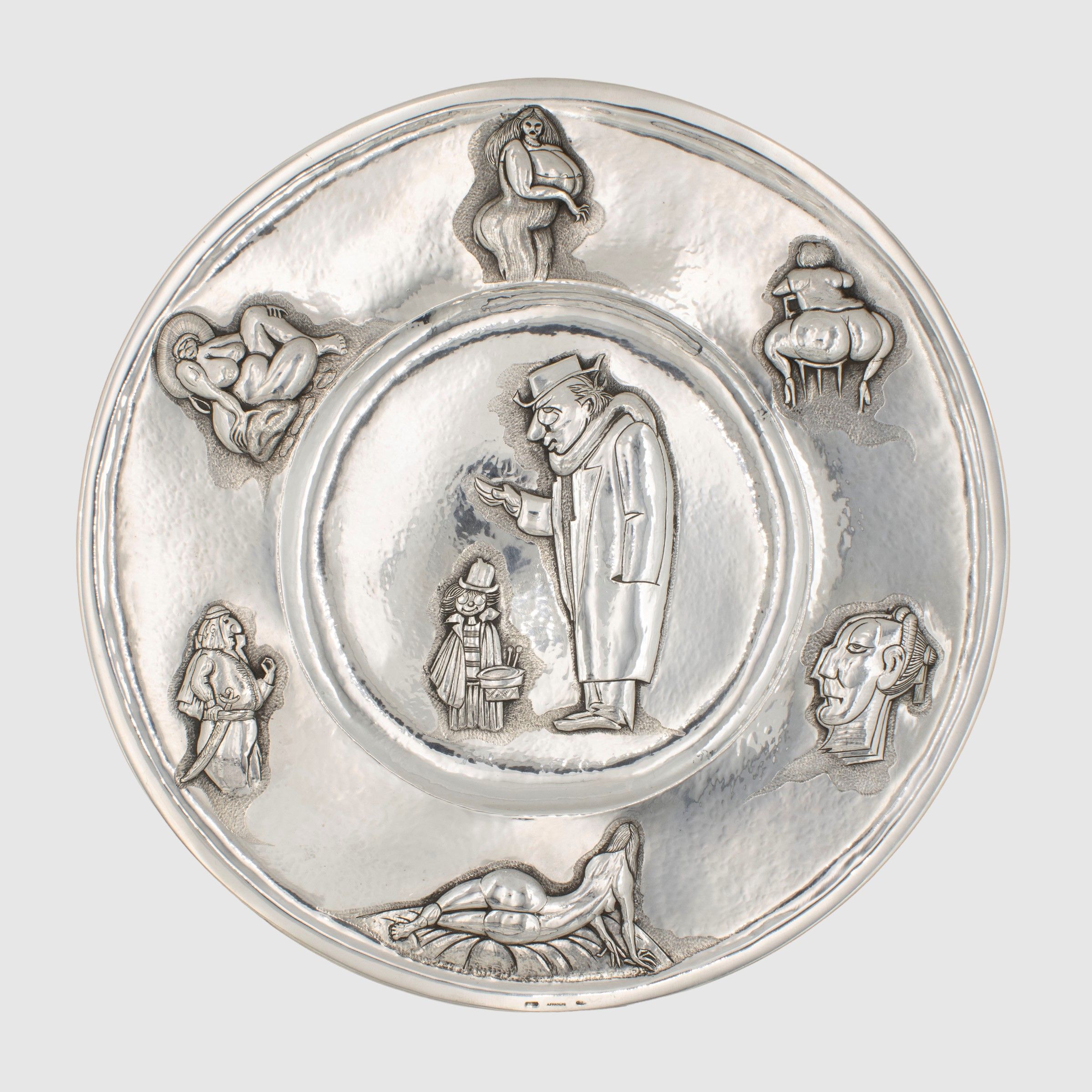 Italia, anni 90 orafo Adolfo Franchi, Roma, grande piatto in argento 925, firmato, peso 1572 gr. Esposizione: 'Desideri Preziosi', Tempio di Adriano, Roma, 1995