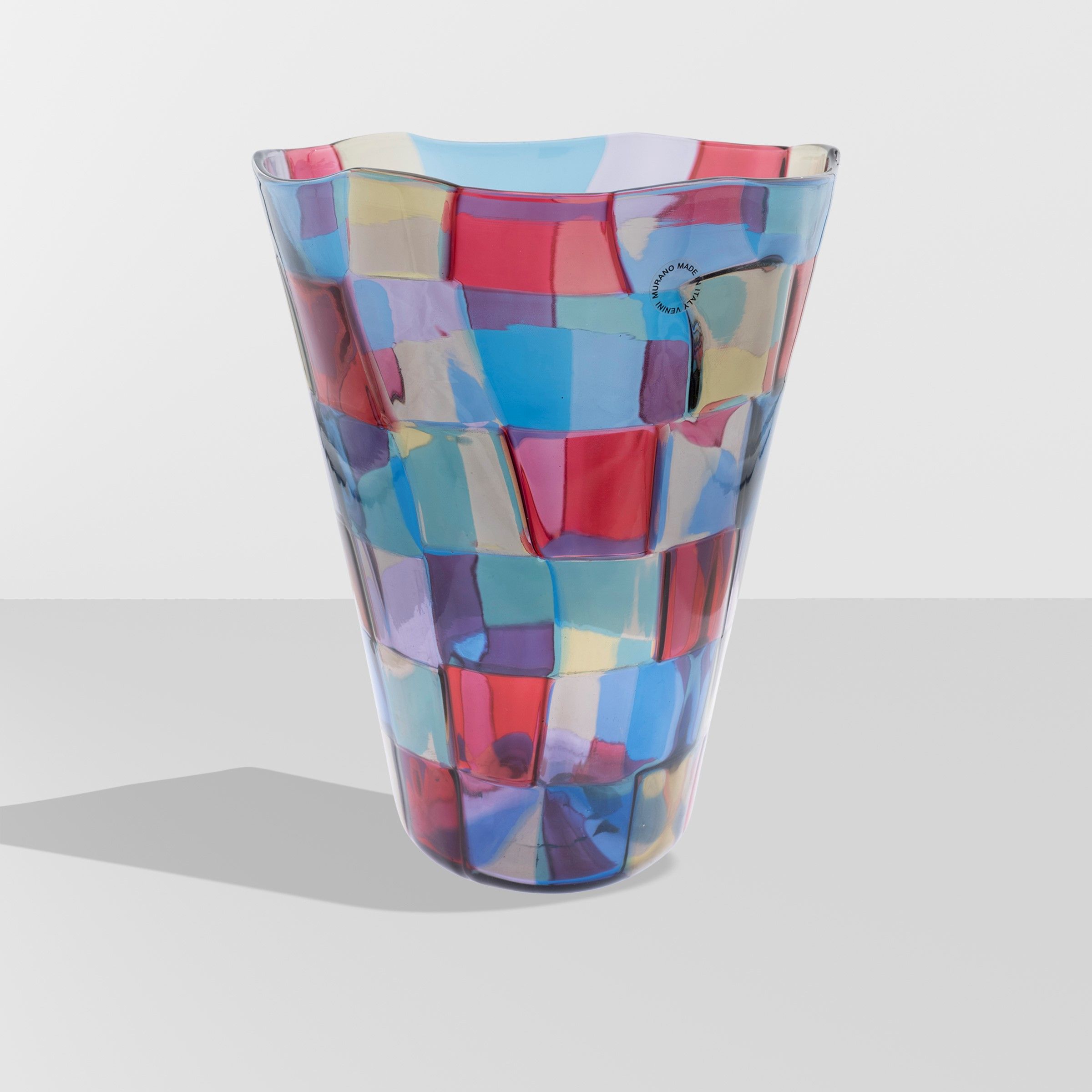 Murano, 2003 vaso serie Pezzato in vetro a tessere policrome, etichetta della produzione, firma e data a punta