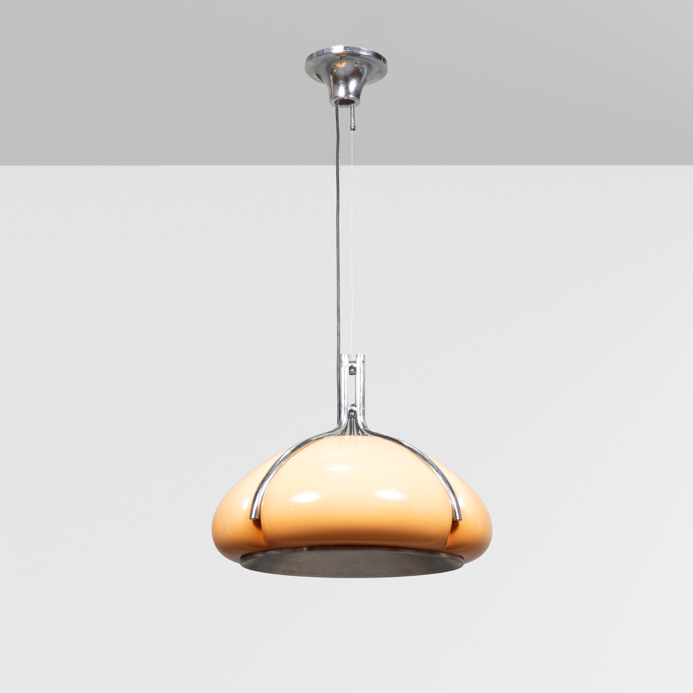 Italia, anni 70 lampada a sospensione mod. Quadrifoglio in metallo cromato e perspex