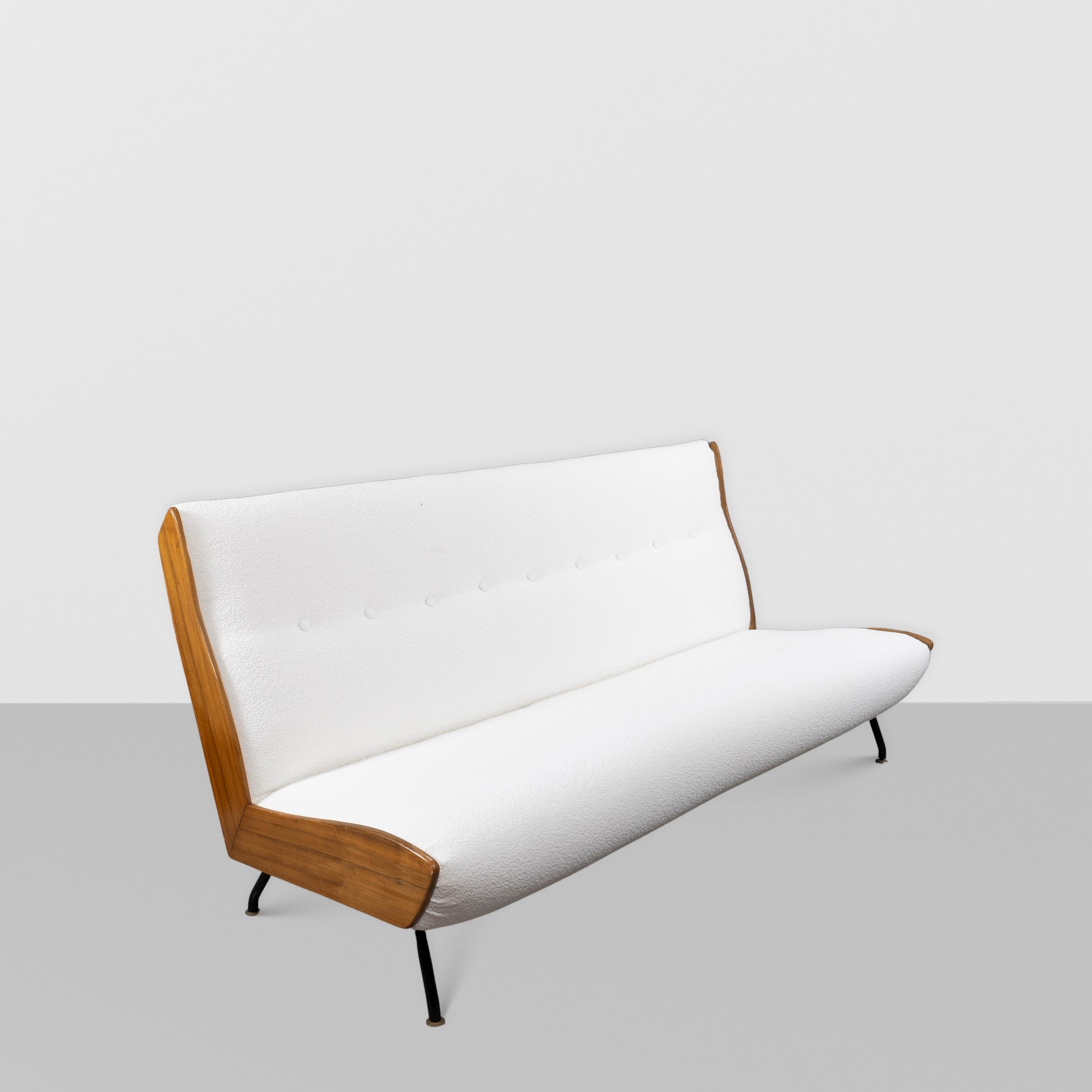 anni 60 divano in legno, metallo verniciato e tessuto imbottito