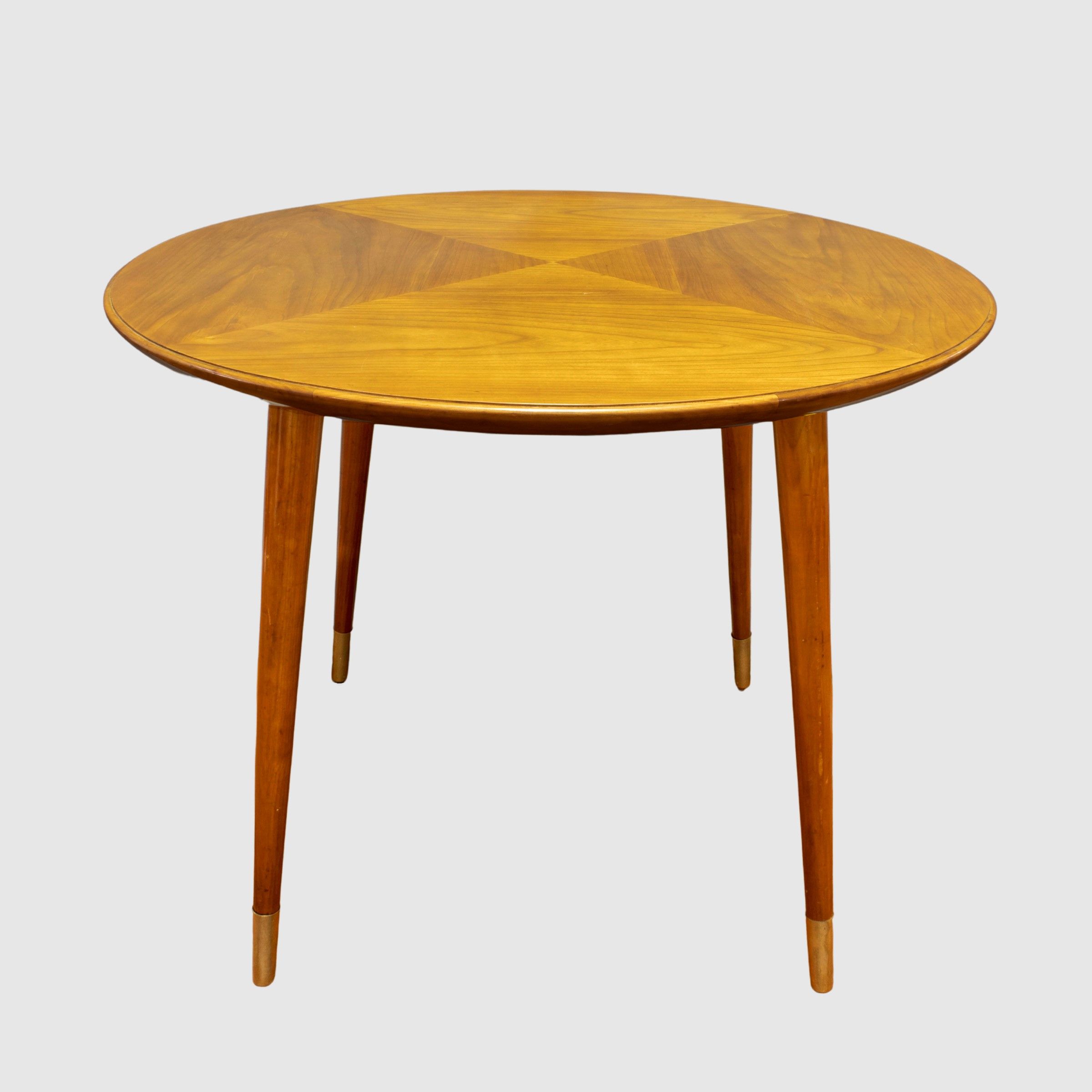 anni 50 tavolo circolare in legno ed ottone, lievi usure