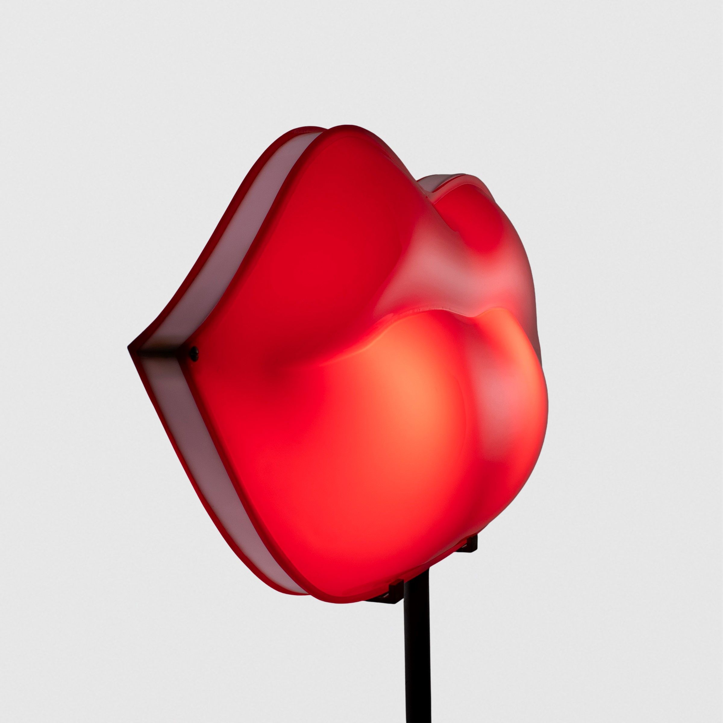 1973 rara lampada da terra mod. Bouche in metallo e perspex, ed. 10/25, firmata, datata e numerata, lievi usure. Bibliografia: P. Favardin & A. Chiglien, Nicola L., Paris, 2003, copertina anteriore, pag. 6