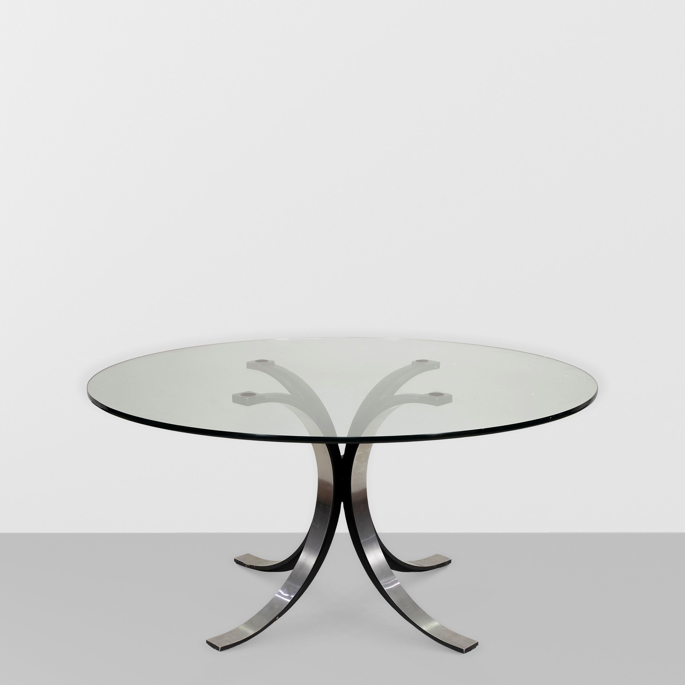 Italia, anni 70 tavolo mod. T69 in acciaio, ottone e vetro trasparente, etichetta della produzione, lievi usure. Bibliografia: P. Bosoni, Osvaldo Borsani. Architetto, designer, imprenditore, Skira, Milano 2018, pag. 494-495