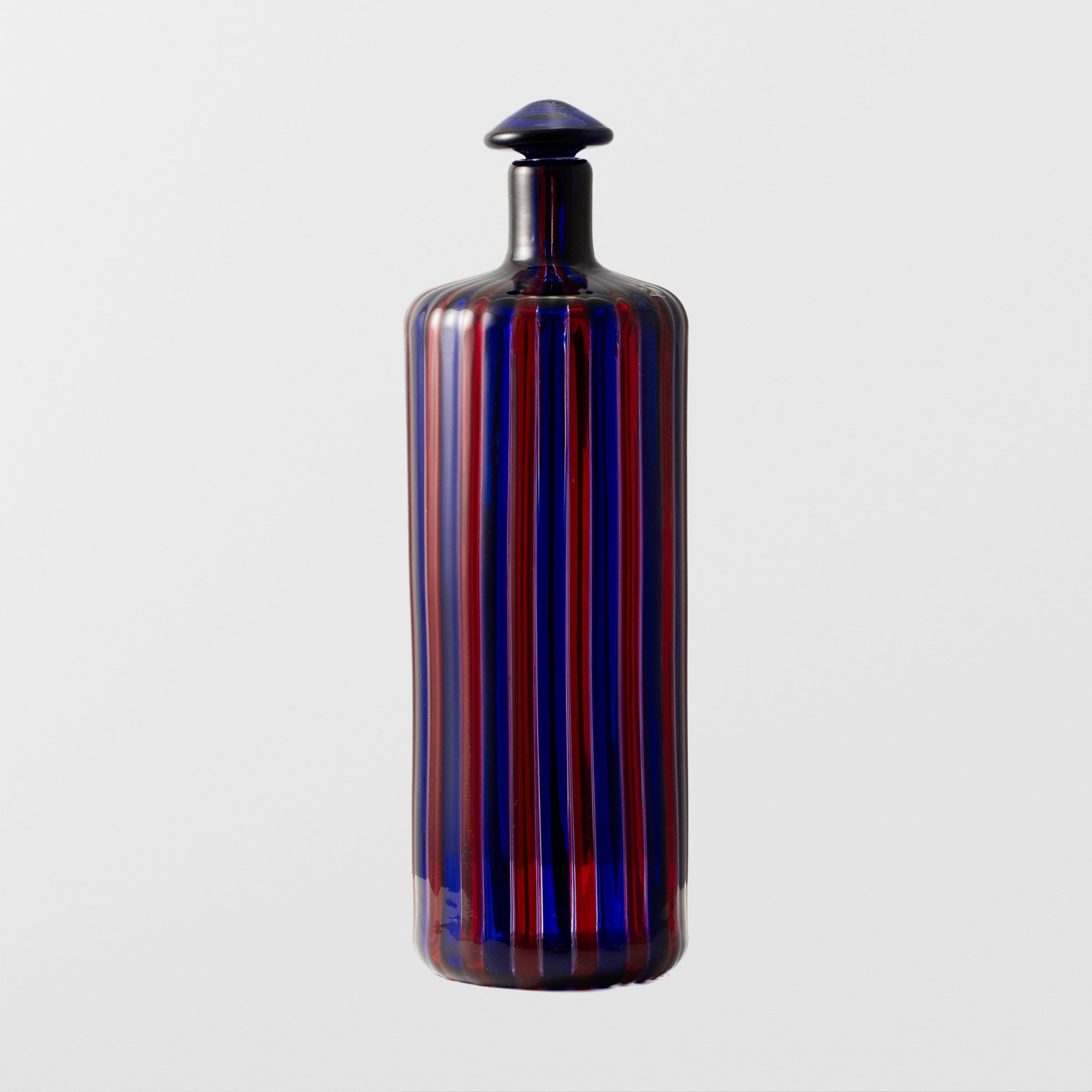 Murano, 1990 bottiglia serie Morandiane in vetro soffiato a canne colorate, firma e data a punta, etichetta della produzione. Bibliografia: Catalogo originale Venini 1978