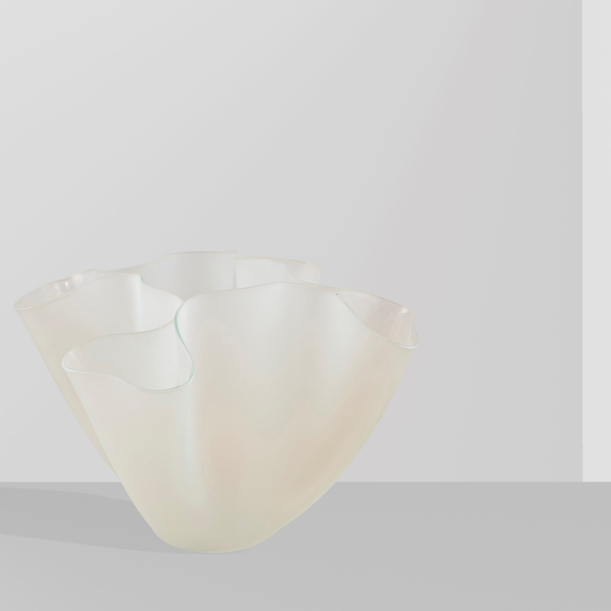 Italia, anni 60-70 vaso mod. Cartoccio in vetro satinato. Bibliografia: F. Deboni, Fontana Arte, Gio Ponti, Pietro Chiesa, Max Ingrand, Allemandi 2012, n. 271