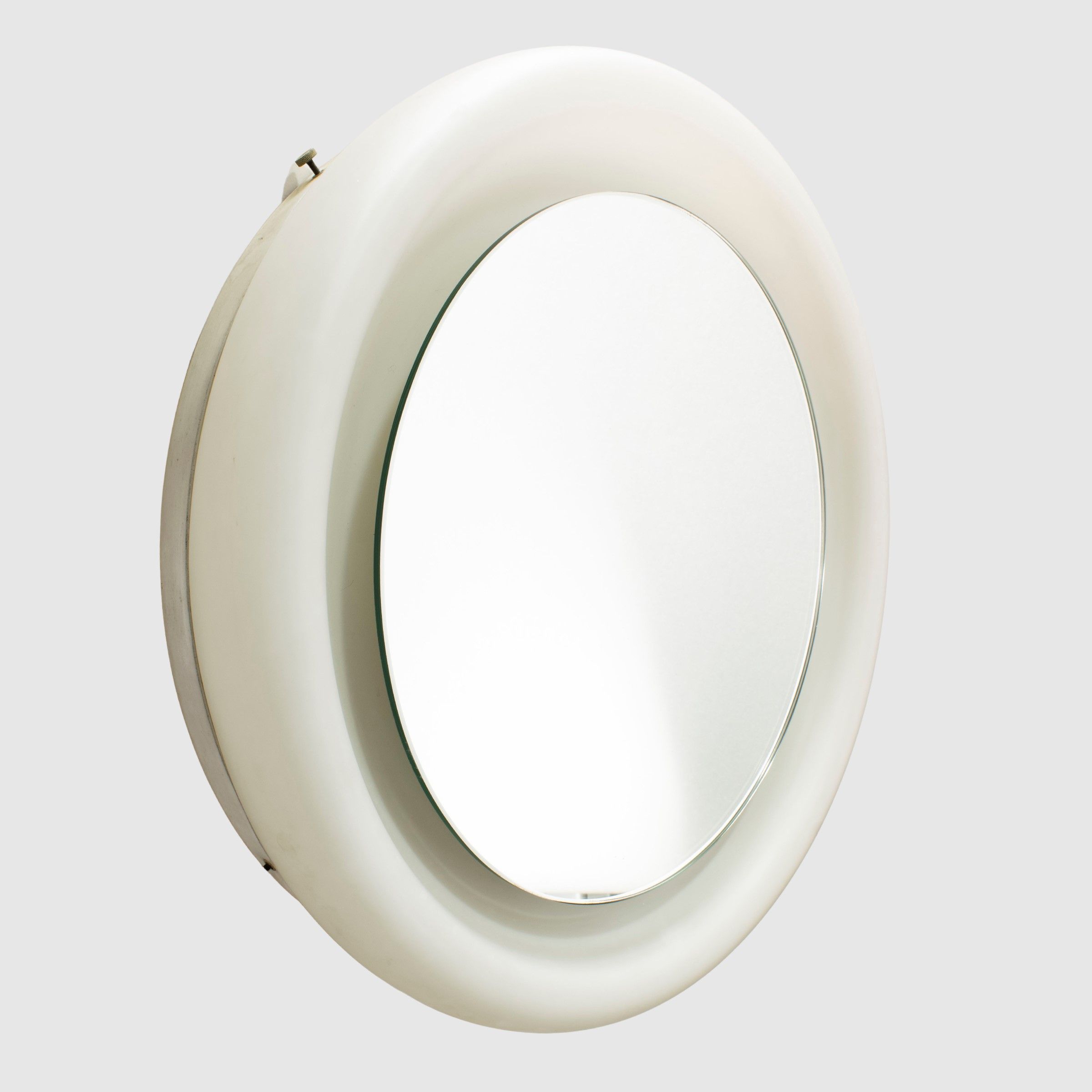 Italia, anni 60-70 specchio da parete mod. 2559 retroilluminato in vetro specchiato, vetro satinato e metallo Bibliografia: catalogo Fontana Arte
