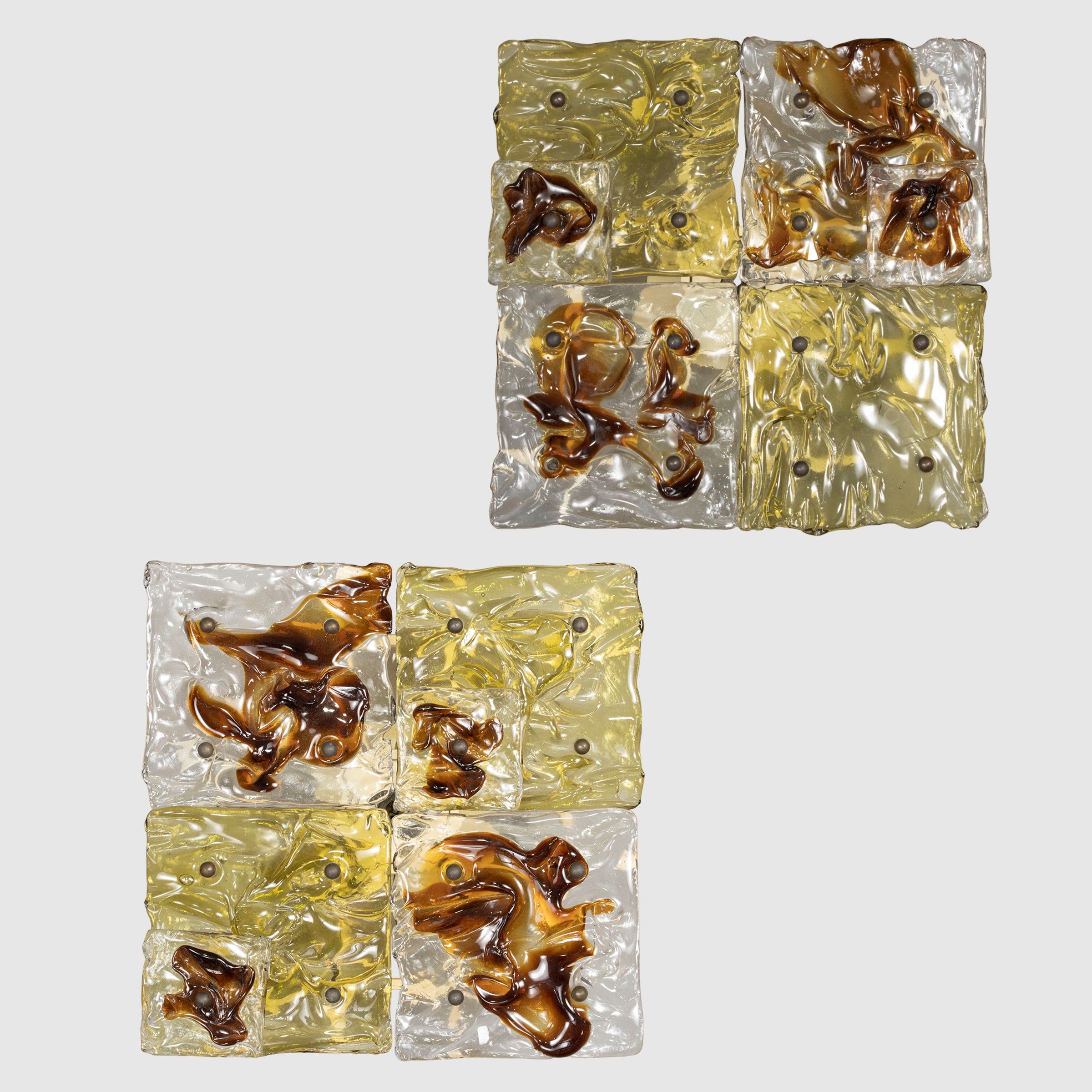 Murano, anni 60 coppia di lampade da parete o soffitto mod. Patchwork in metallo verniciato e vetro policromo. Bibliografia: I vetri di Venini, Catalogo 1921/2007