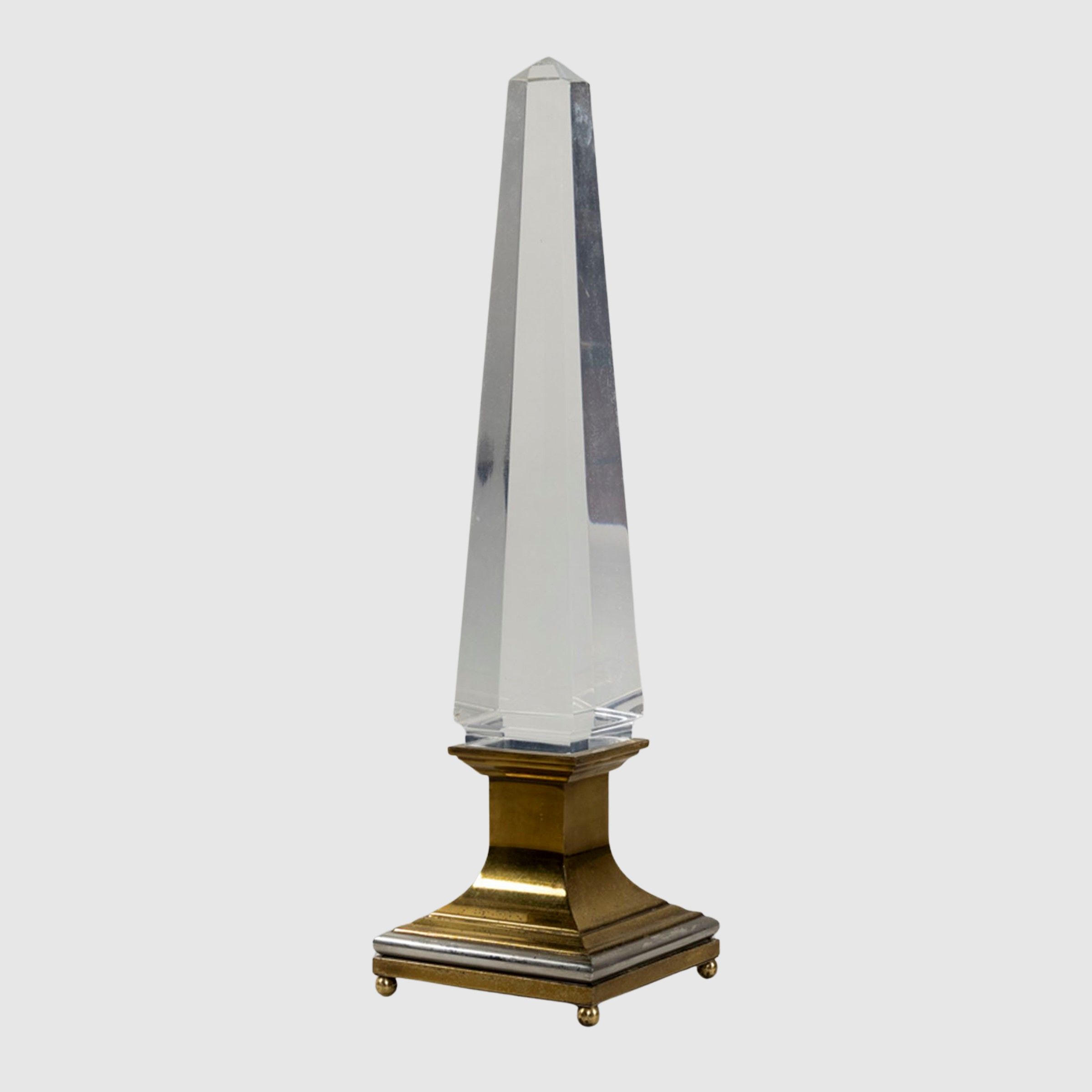 Francia, anni 70 lampada da tavolo mod. Obelisco in ottone, lucite e perspex, lievi usure