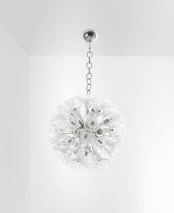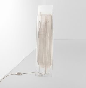 cm 53X53X120 Struttura in acciaio spazzolato e alluminio pressofuso e diffusori in vetro opalino. Prod. AV Mazzega, [..]