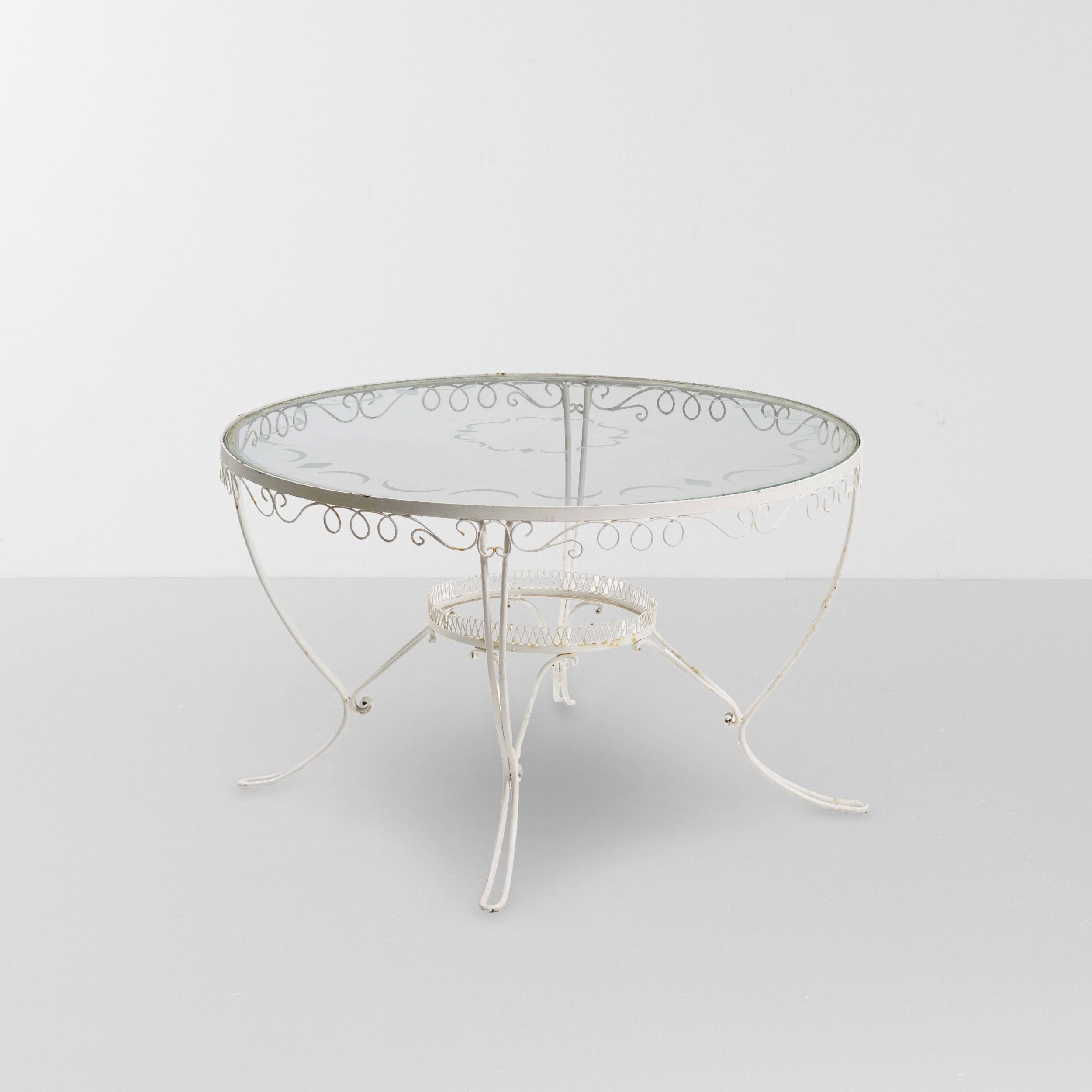 Tavolo con piano in vetro inciso.