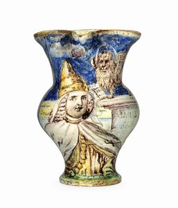 Cm 13X13X31 Maiolica. Marca: “Ginori” coronato in blu / 162-1103. Iscrizione: “Picus cambiato [..]