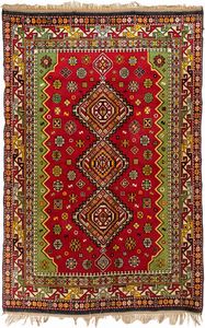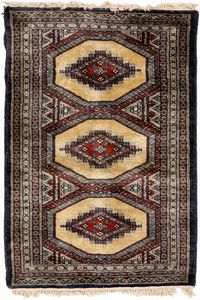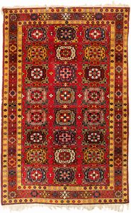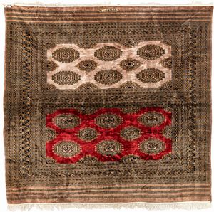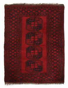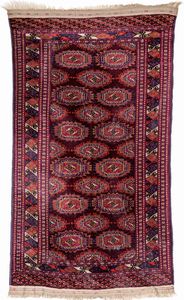 cm 160x120 design tipico dei tappeti della tribù Tekke del Turkmenistan, caratterizzato da una serie di 'gul' [..]