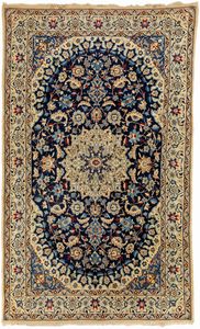 cm 125x210 caratterizzato da un raffinato schema floreale su fondo blu intenso. Il motivo centrale presenta un [..]