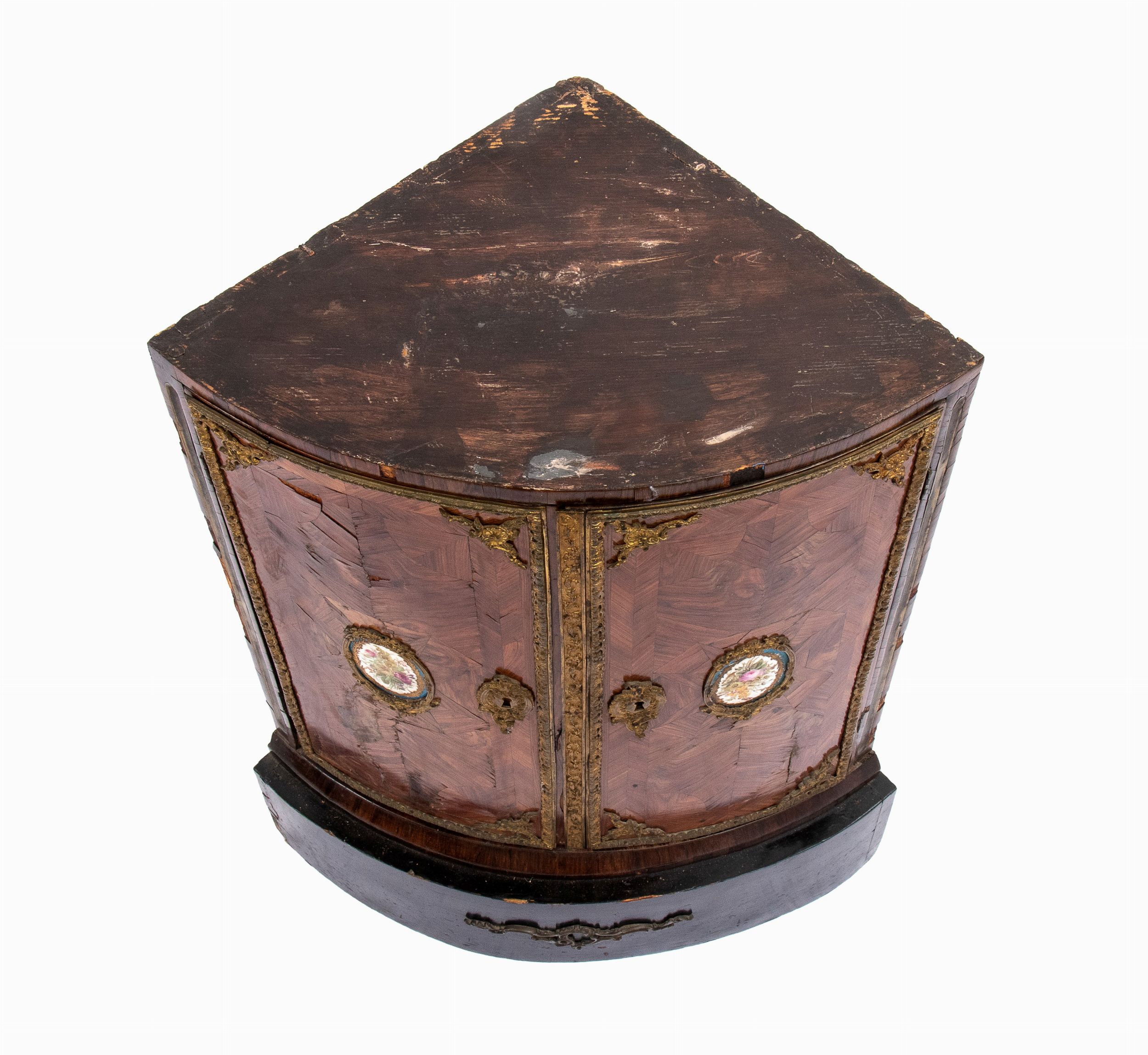 XIX secolo con applicazioni in bronzo dorato e placche di porcellana dipinte, piano in marmo bianco Carrara.