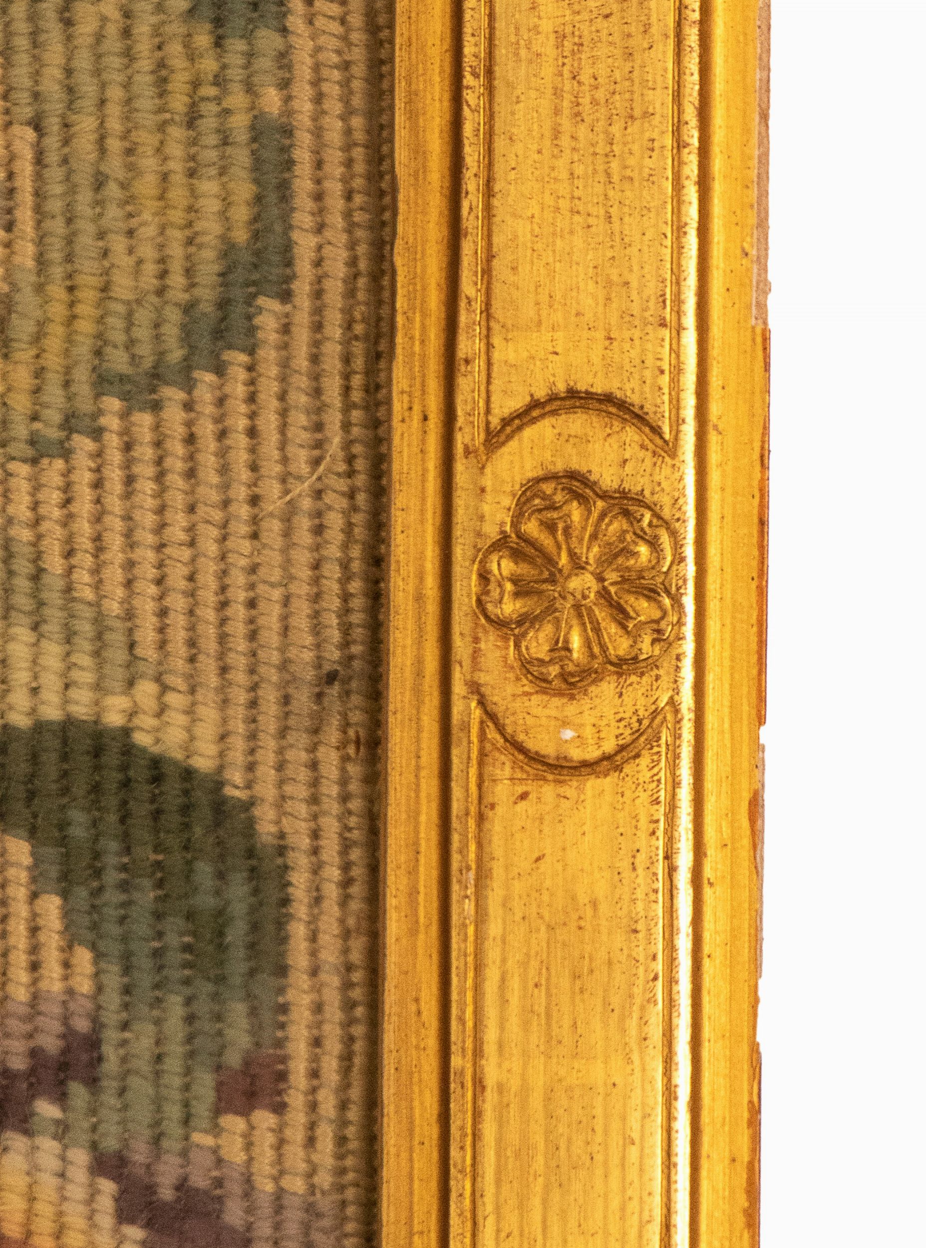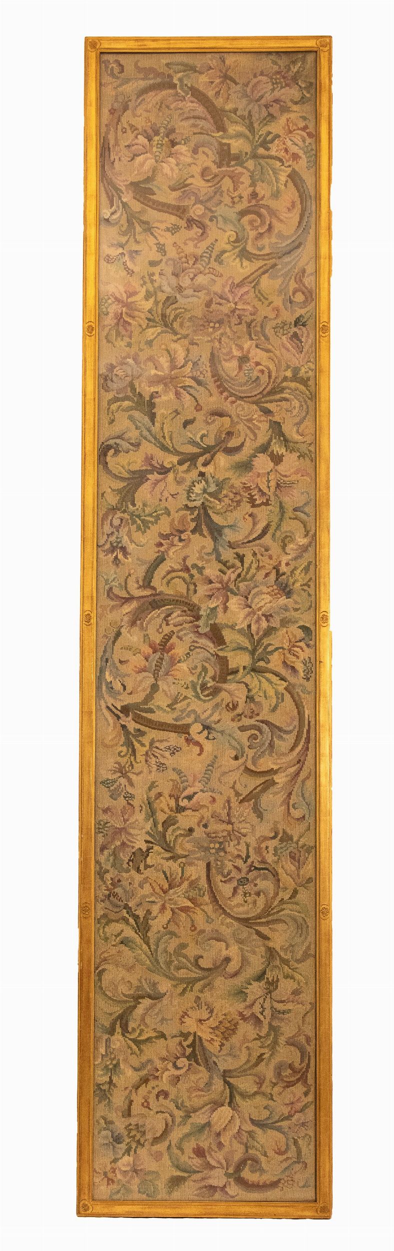 XX secolo arazzo con motivi floreali e cornice dorata.