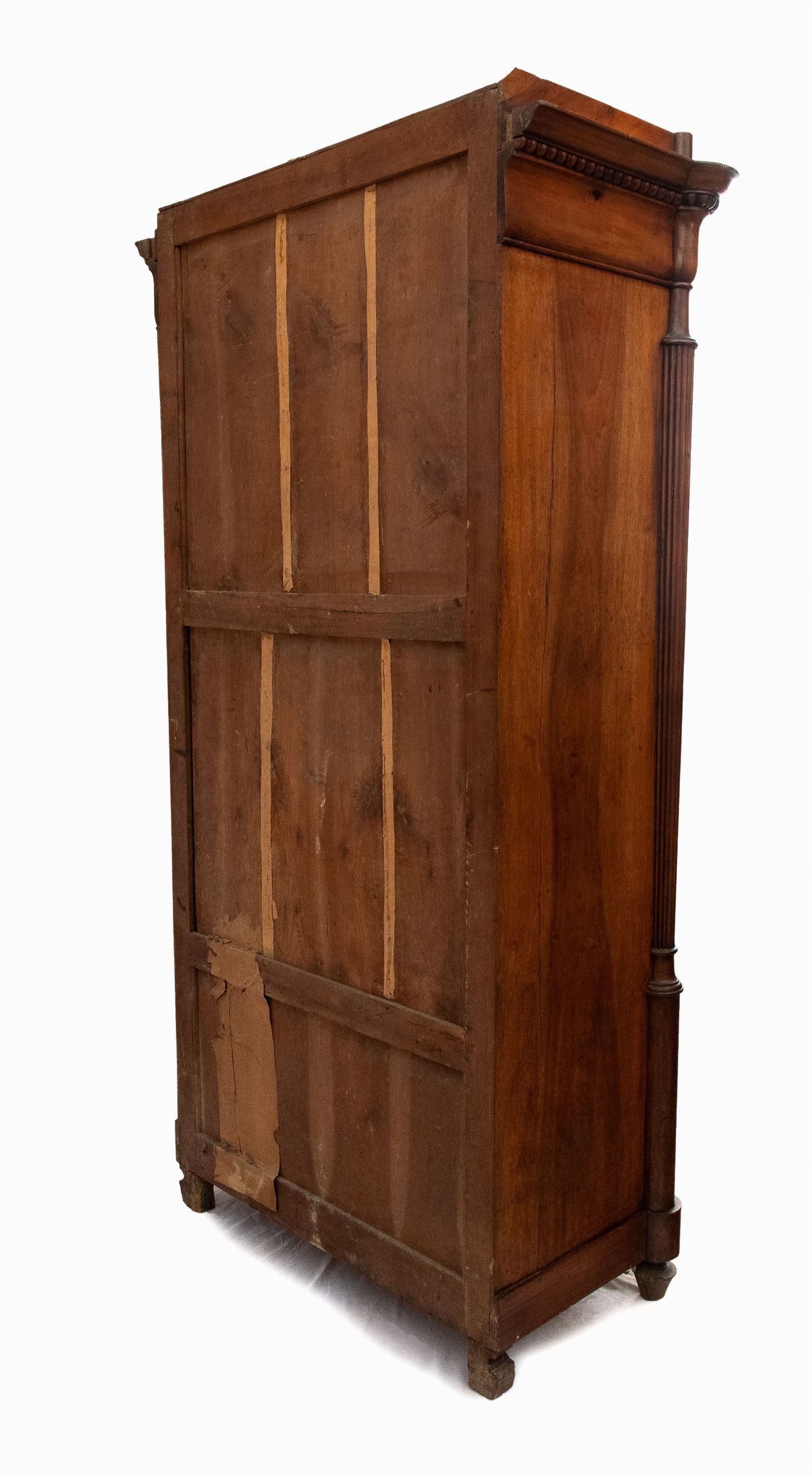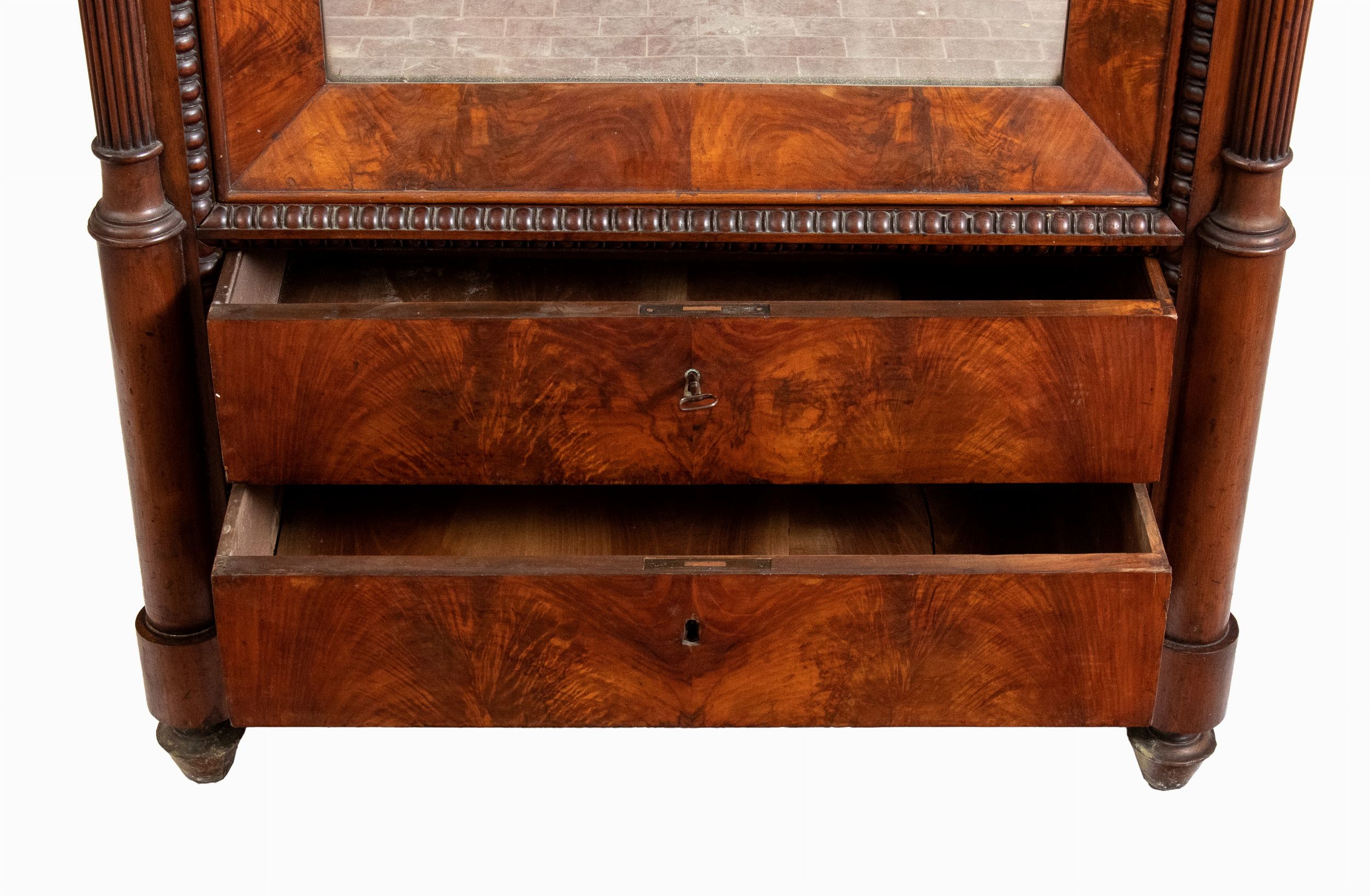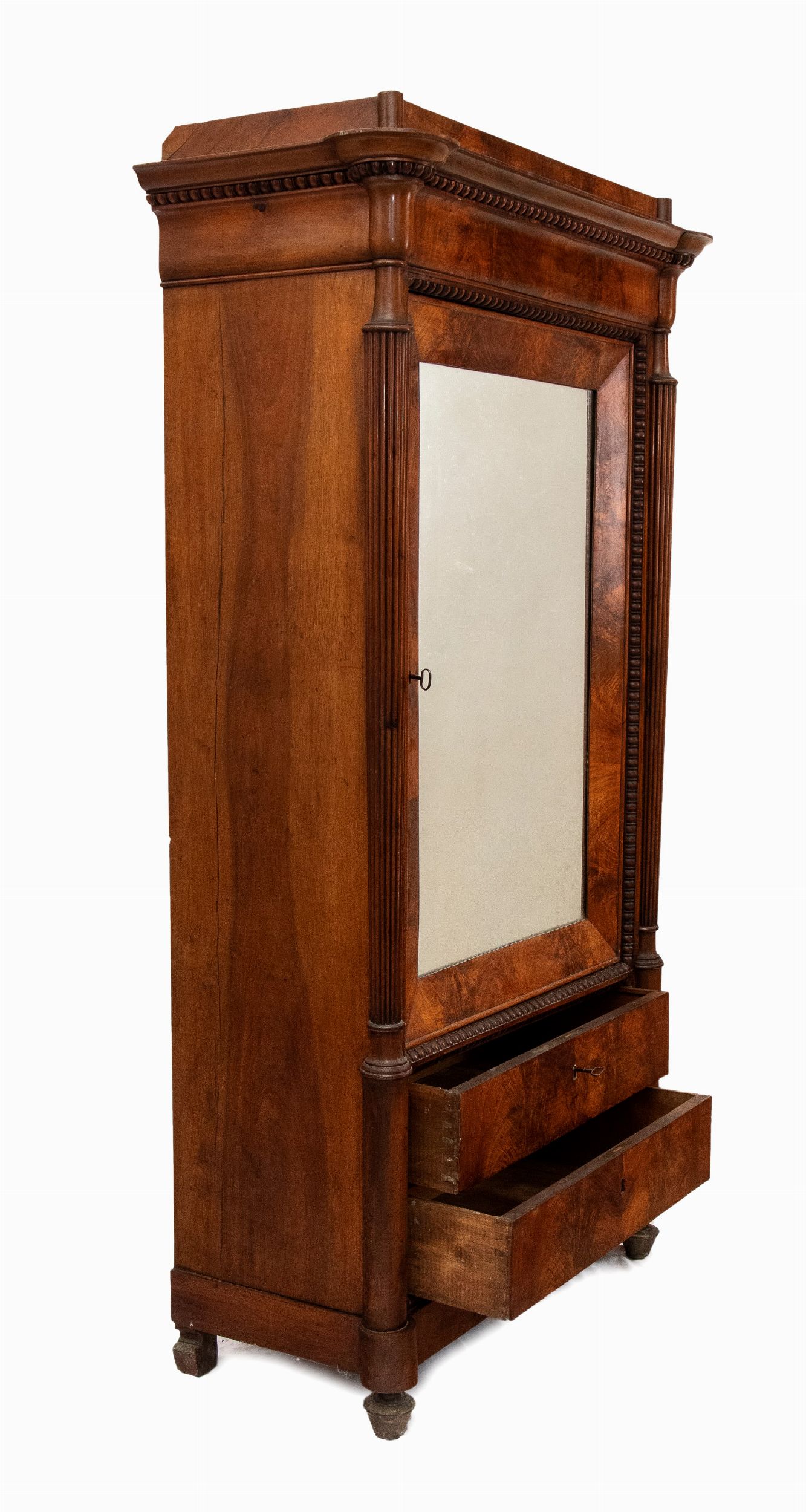 XIX secolo in legno di noce e piuma di noce con specchio centrale e due cassetti; colonnine scanalate poste sui lati.