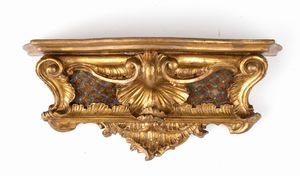 Altezza x larghezza x profondità : 55 x 17 x 30 cm Italia settentrionale, XVIII secolo n legno intagliato e dorato, [..]
