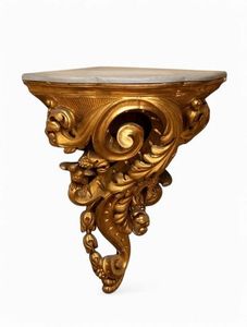 Altezza x larghezza x profondità : 80 x 64 x 45 cm XVIII secolo piano in marmo, intagliate a volute, forme vegetali [..]
