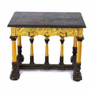 Altezza x larghezza x profondità : 262 x 110 x 55 cm. Toscana, XVIII secolo piano in marmo carrara, provenienza [..]