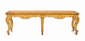 Altezza x lunghezza x profondità : 41 x 131 x 43 cm Roma, XVIII secolo seduta in paglia di Vienna, con gambe cabriolet, [..]