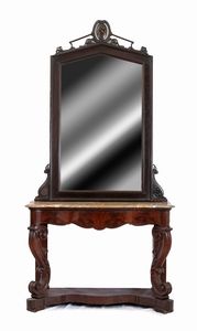 Altezza x larghezza x profonditĂ : 95 x 134 x 54 cm. XIX secolo in mogano e piuma di mogano, con piano in marmo [..]