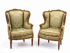 Coppia di poltrone bergère francesi in stile Luigi XVI