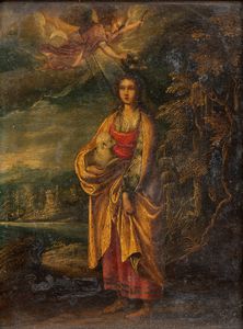 Olio su rame, Altezza x larghezza x profonditĂ : 20 x 14 cm. Peso: 115 g. XVIII secolo La Vergine, raffigurata [..]