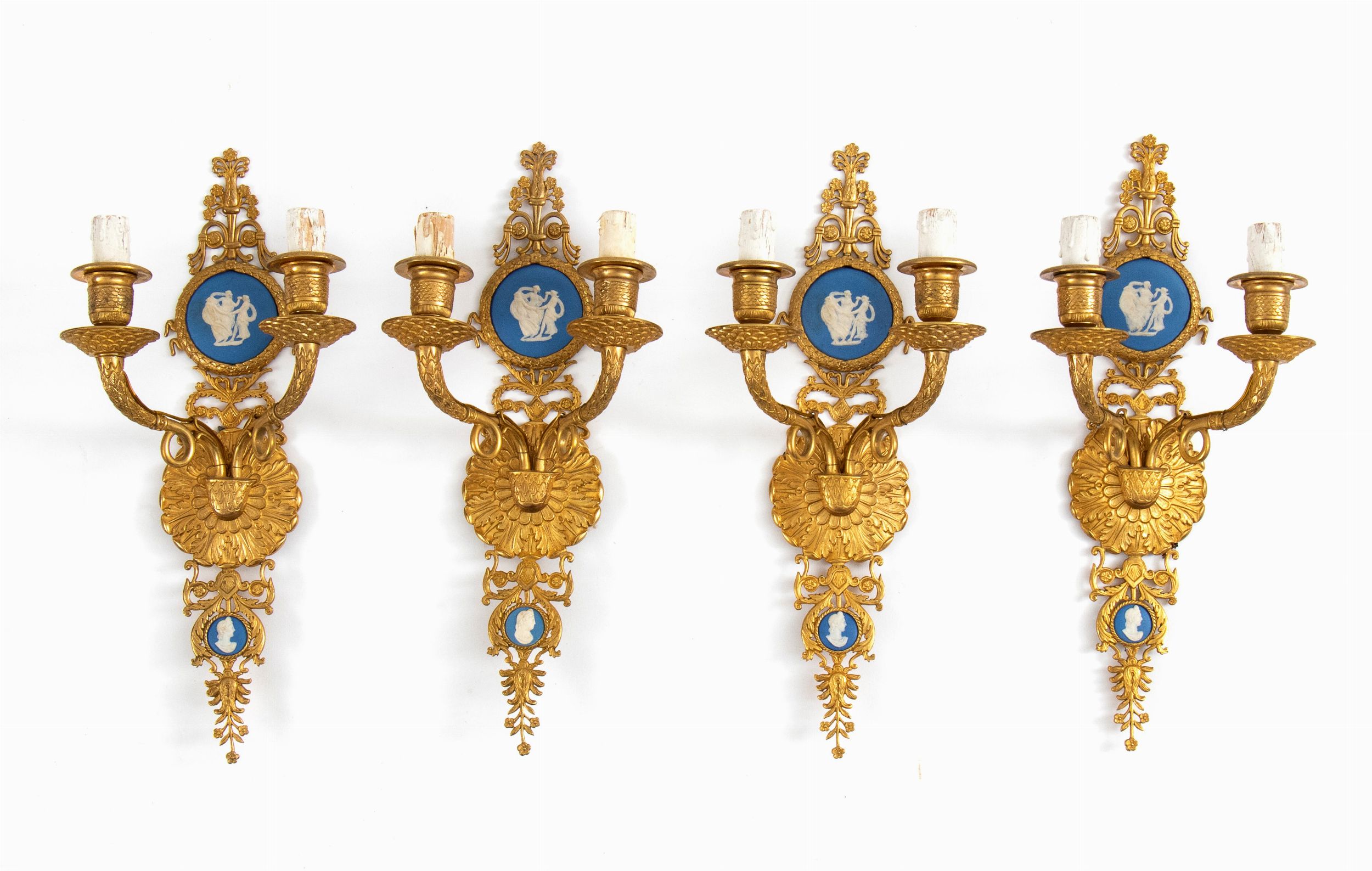 XIX secolo finemente cesellate in bronzo dorato adornate con placche di wedgwood.