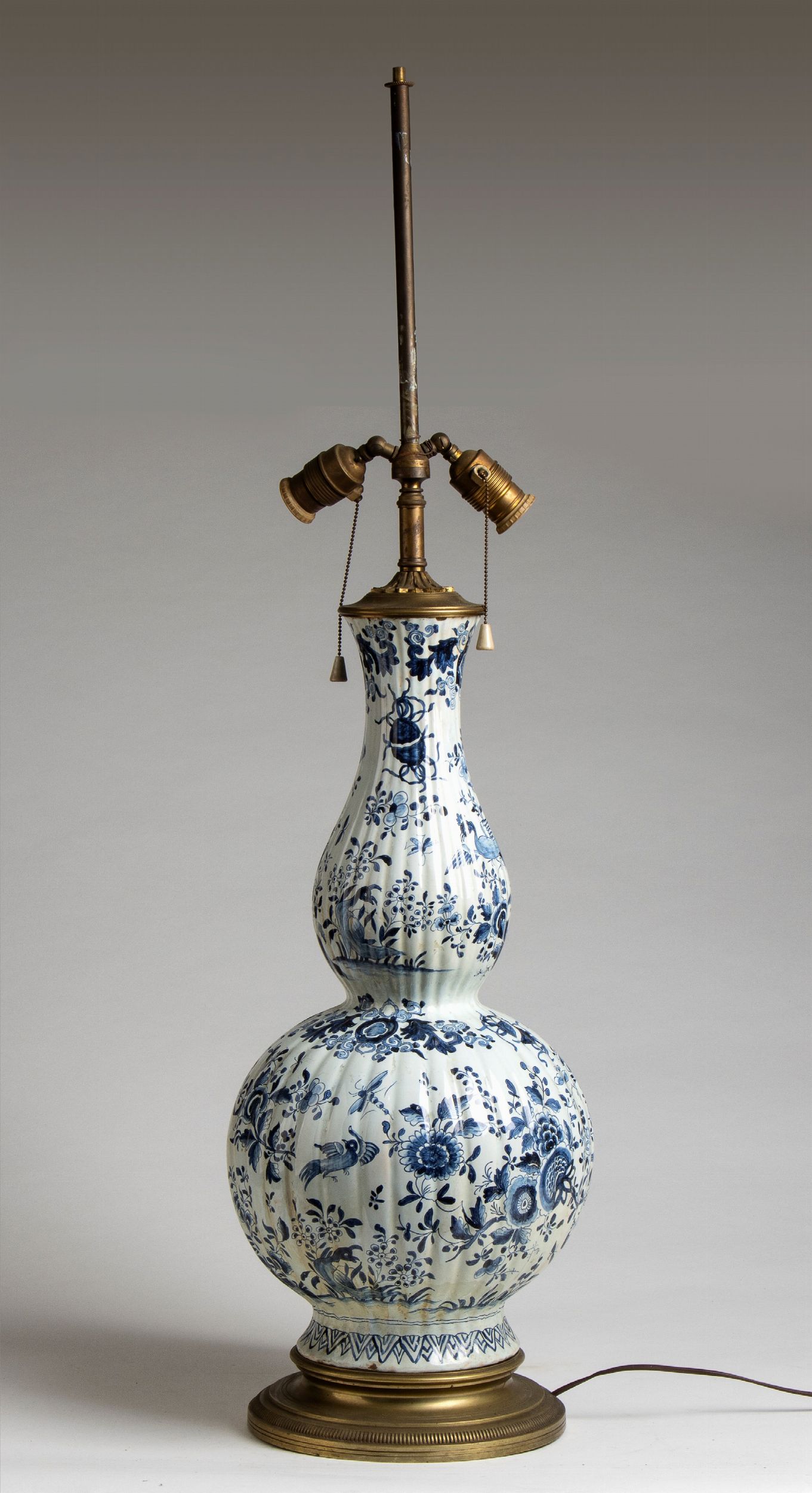 Olanda, XX secolo in ceramica bianca con decorazioni di fiori e uccelli nei toni del blu.