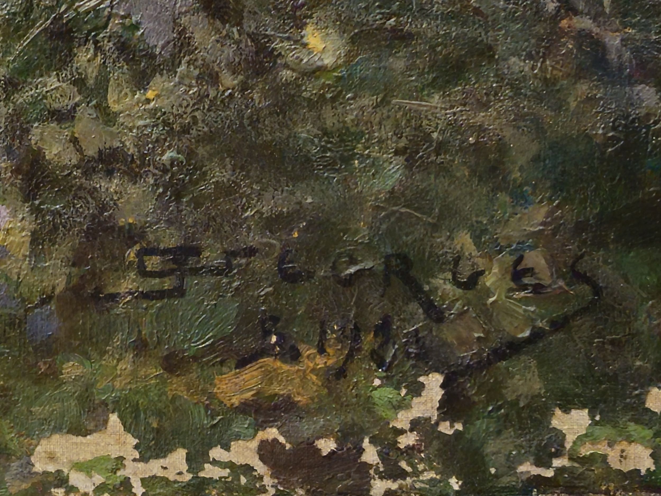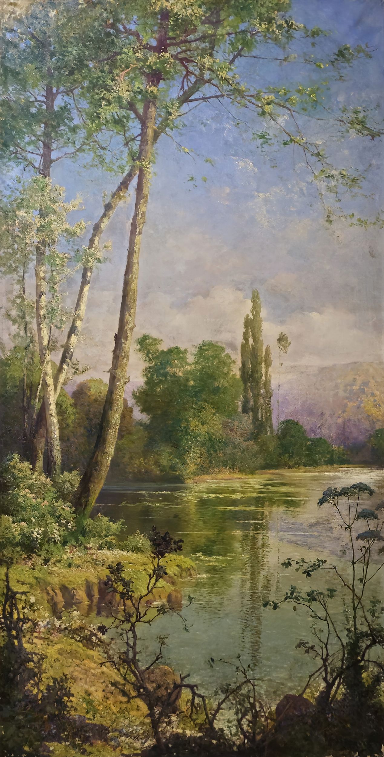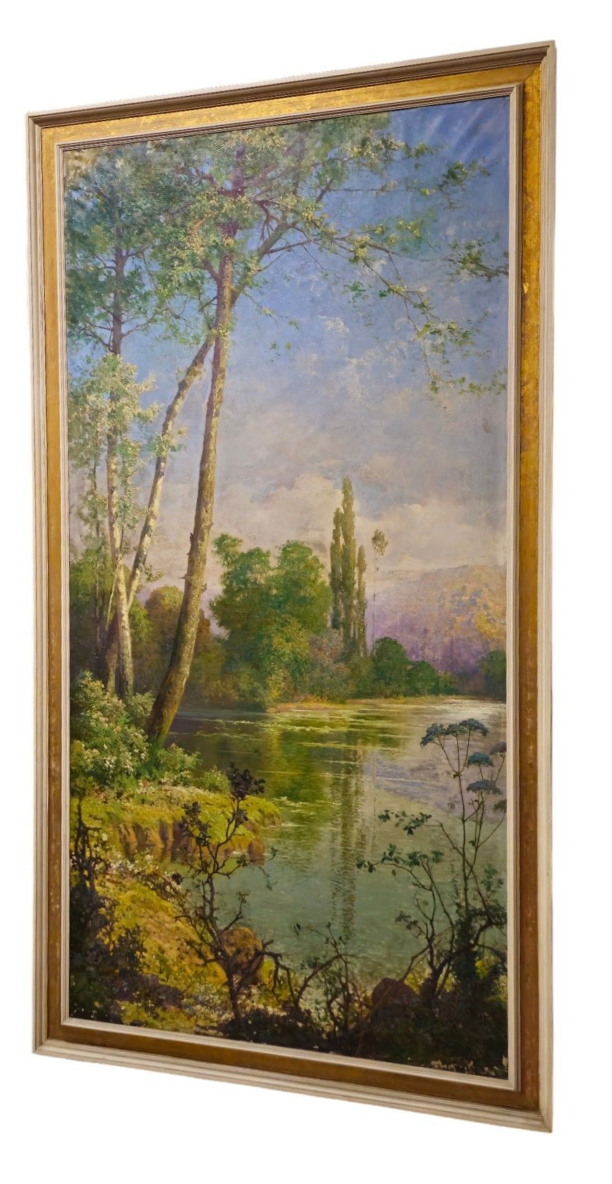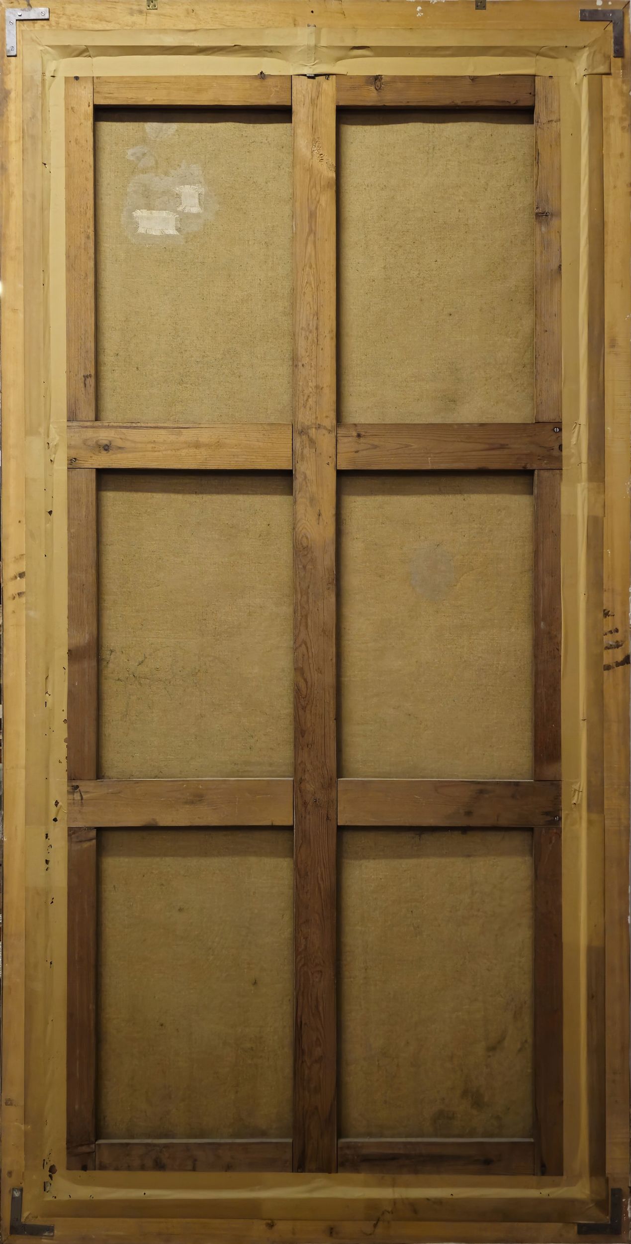 Prima metà XX secolo Firmato in basso a destra (firma non identificata). Dimensioni tela: 203 x 103 cm.