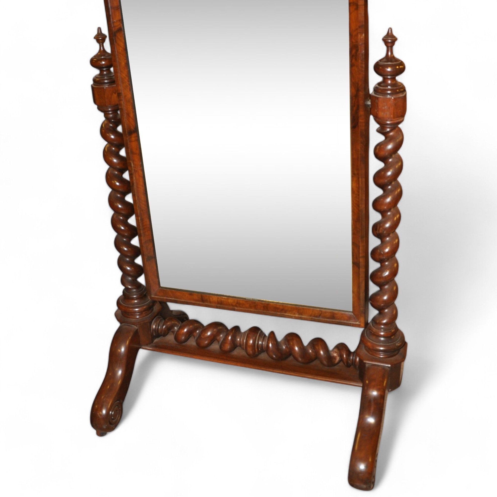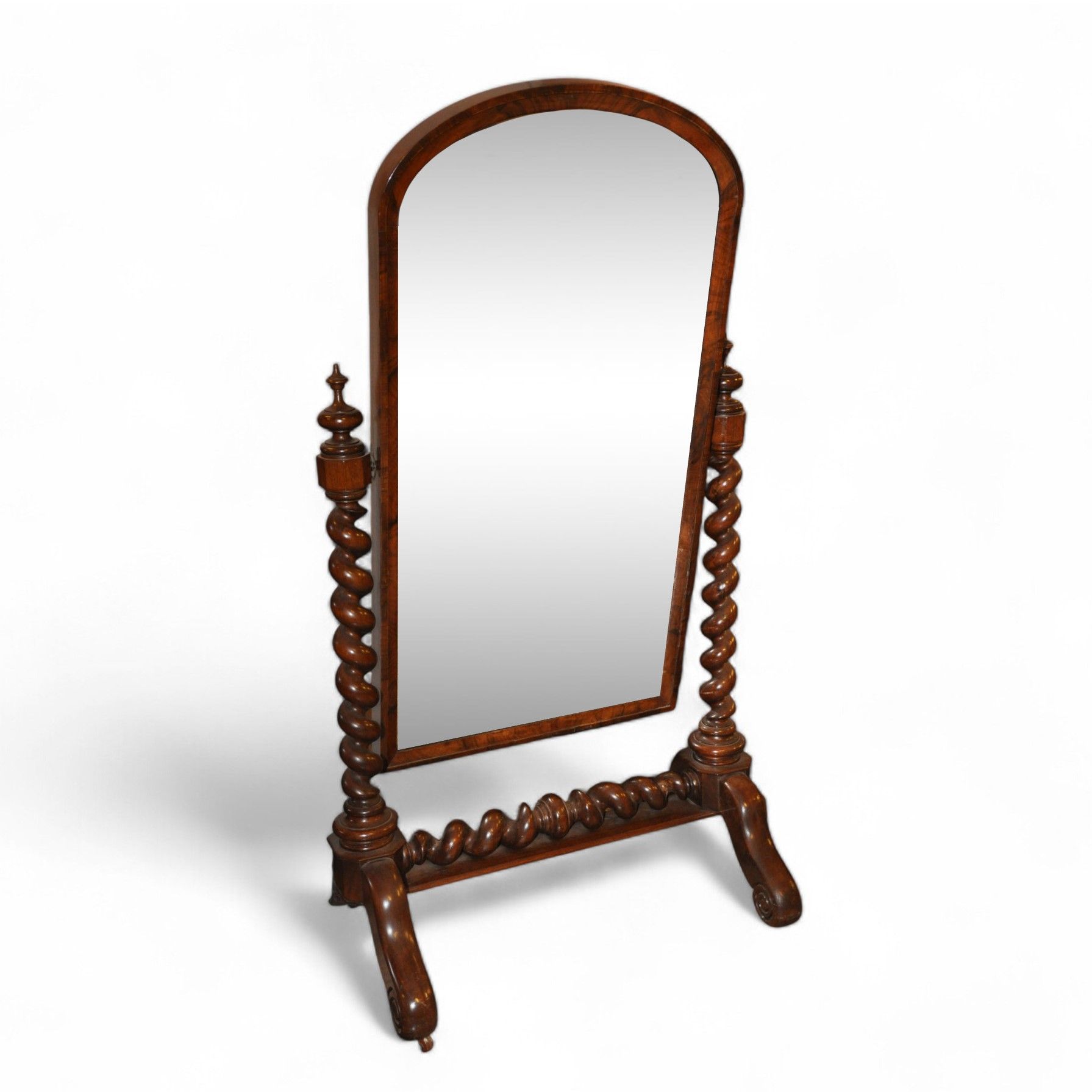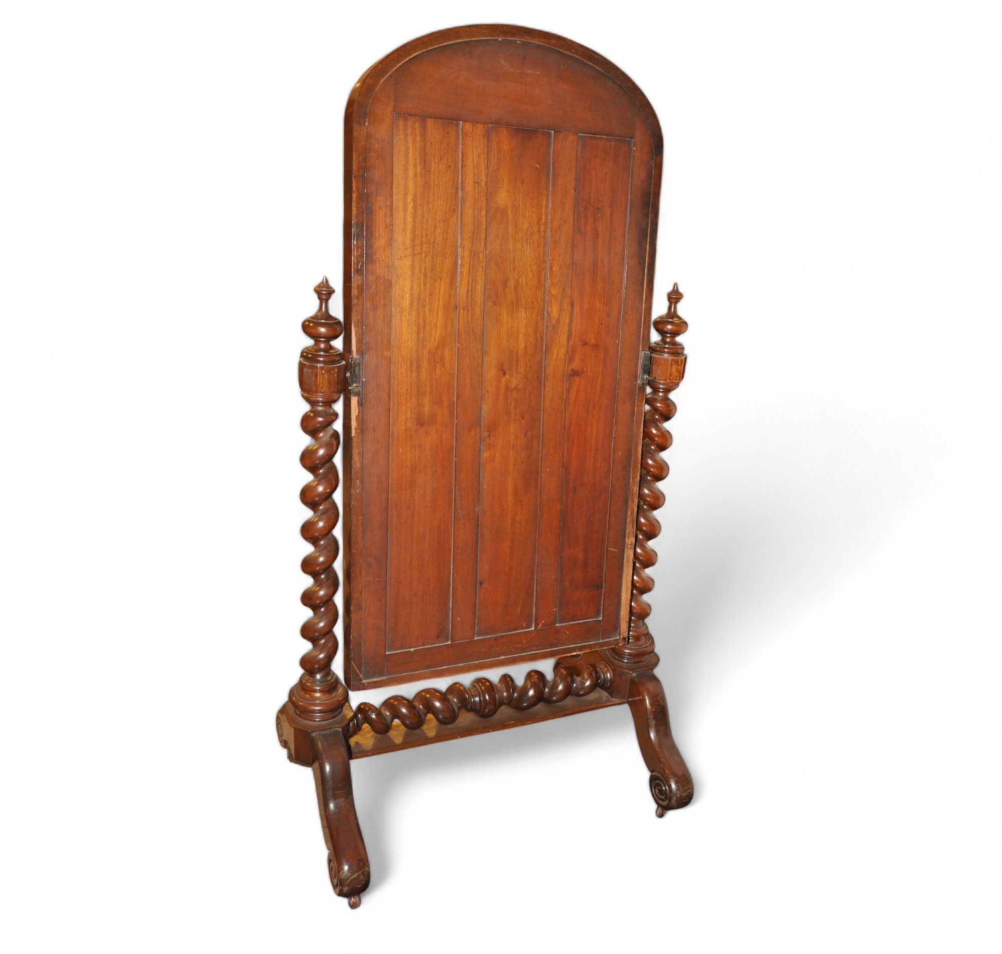 XIX secolo con basamento e colonne a torciglione, struttura in mogano impiallacciata in palissandro. Piedi a riccio con ruote in ceramica.