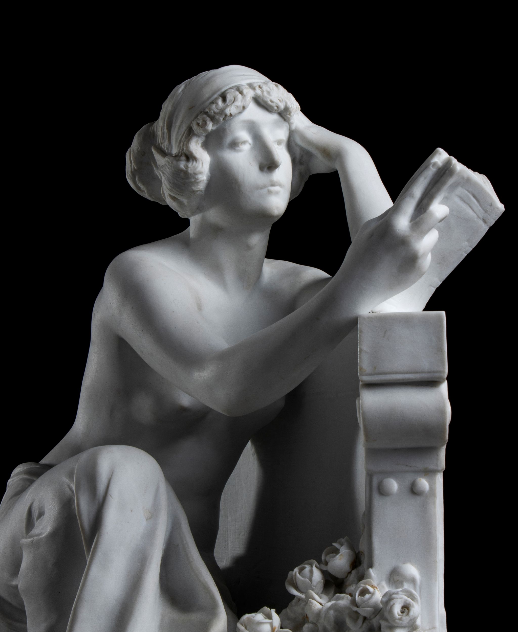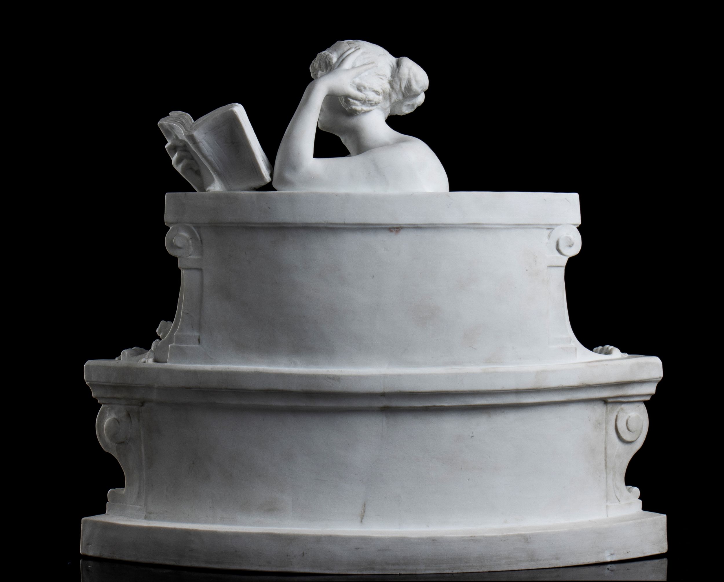 Francia, XIX secolo “Giovane donna che legge”, in posa di lettura. Firmata  nella parte posteriore Louis Carier Belleuse.