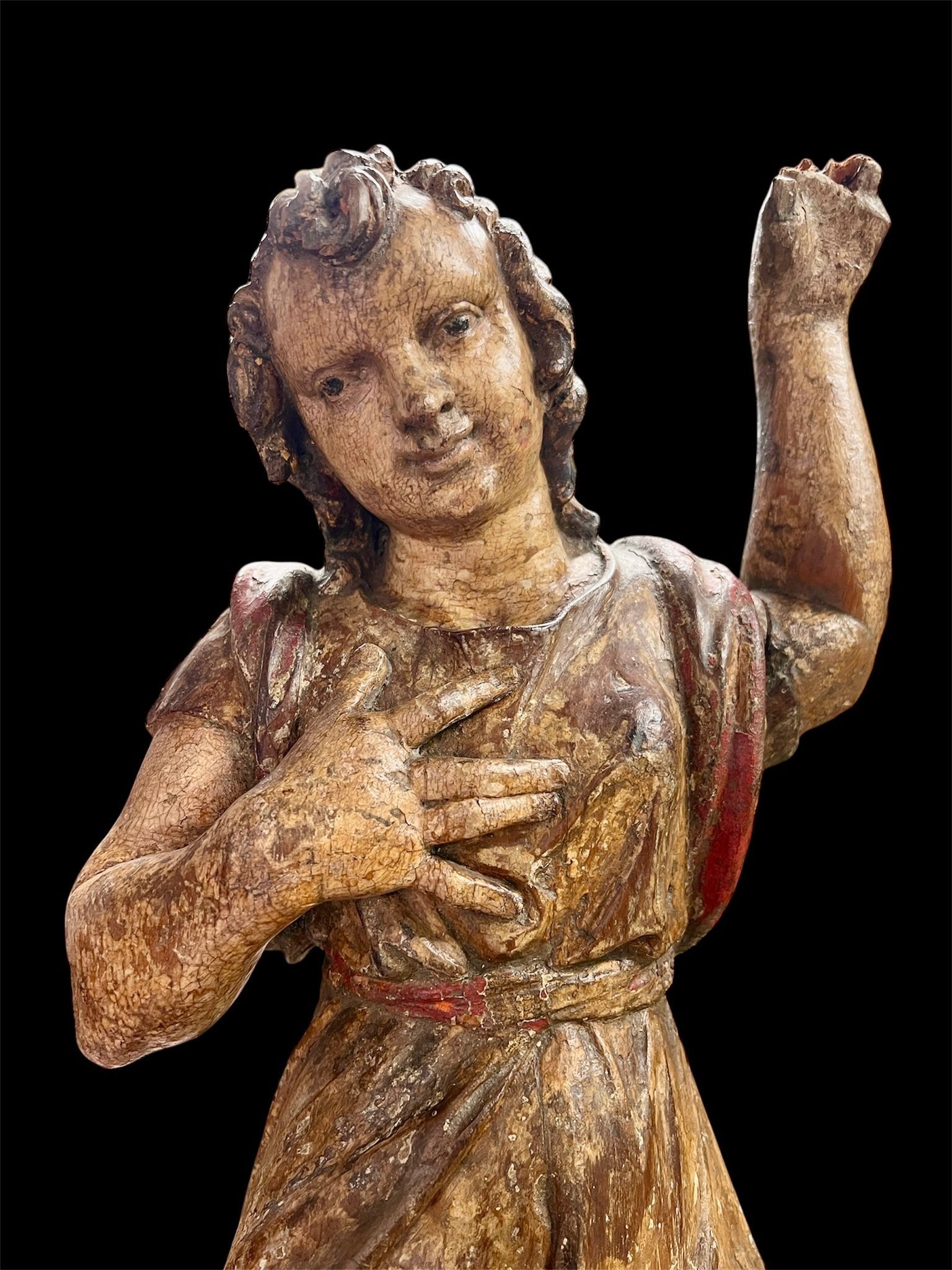 Veneto, fine XVI secolo con traccia di doratura e policromia, raffigurante un angelo.