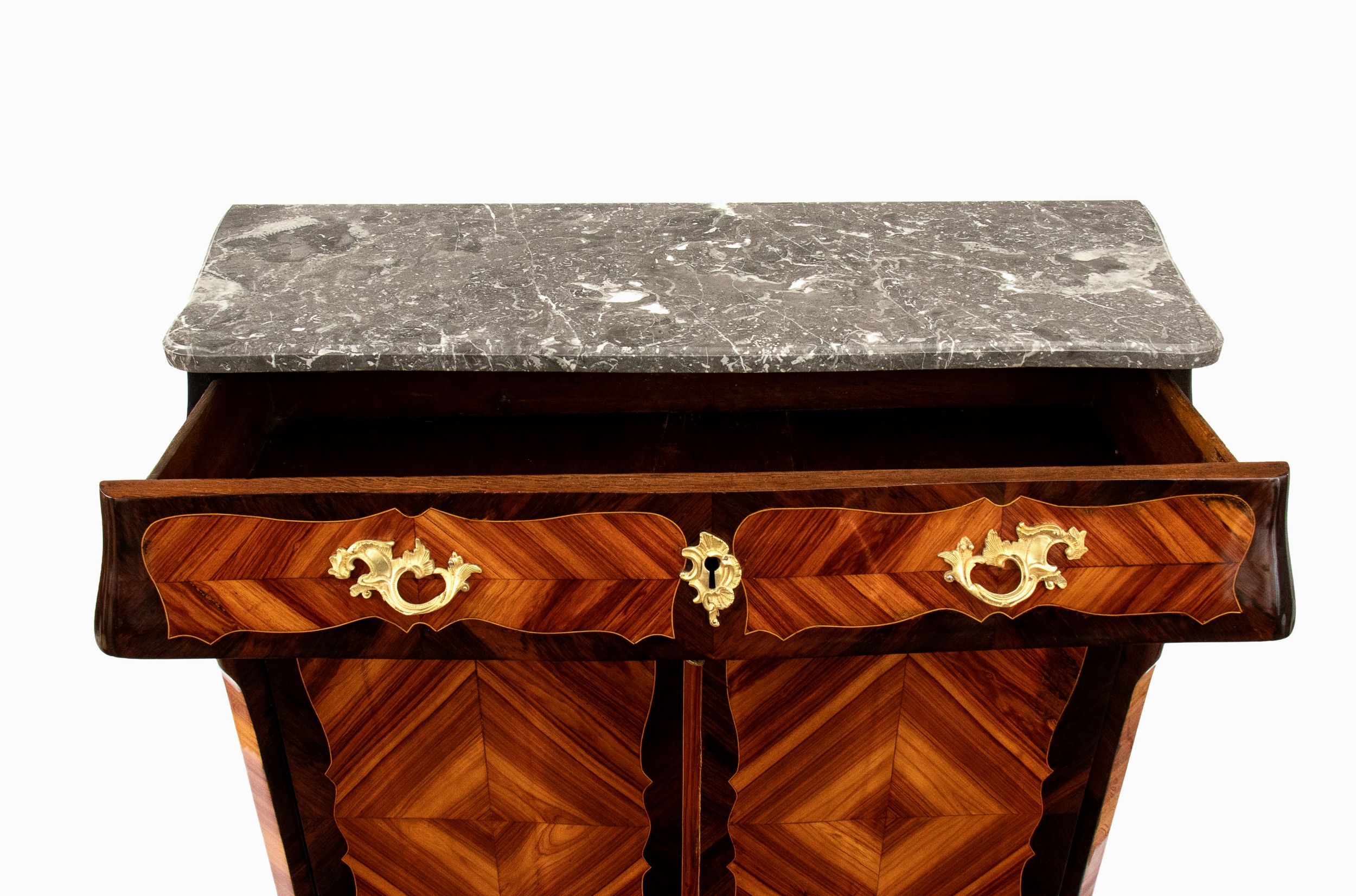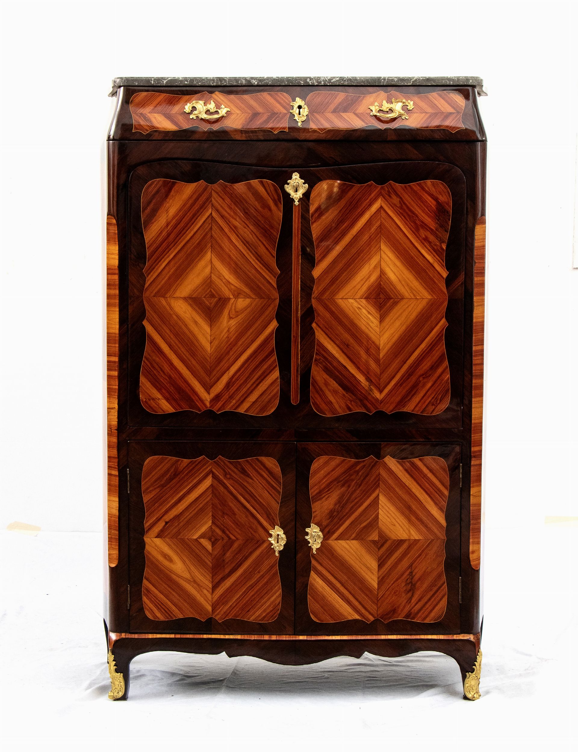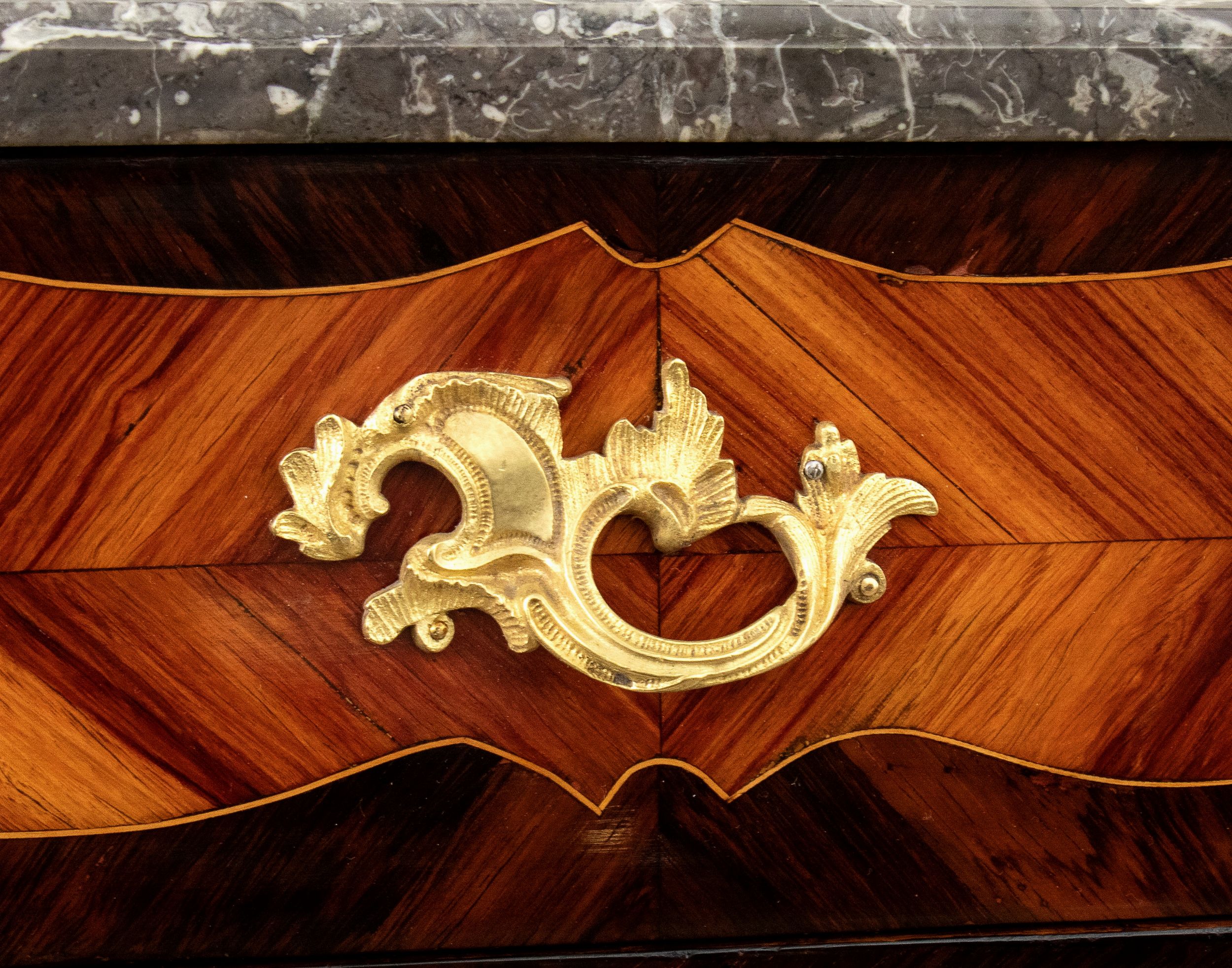 Francia, XVIII secolo lastronato in palissandro e in legno di violetta, con applicazioni in bronzo dorato.