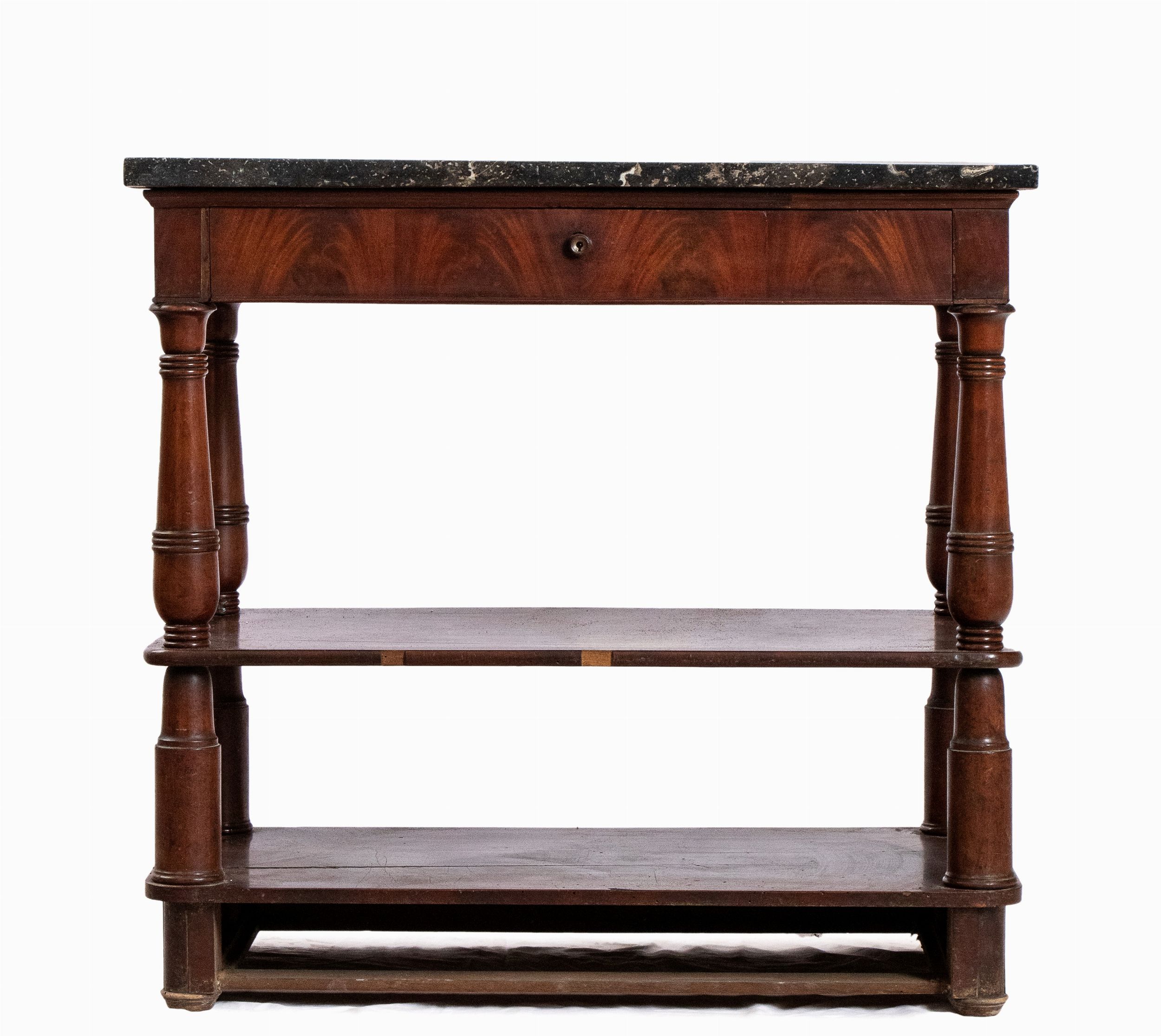 XIX secolo piano in marmo, forma ad etagere con primo cassetto a scrittoio con piano in pelle a scomparsa.
