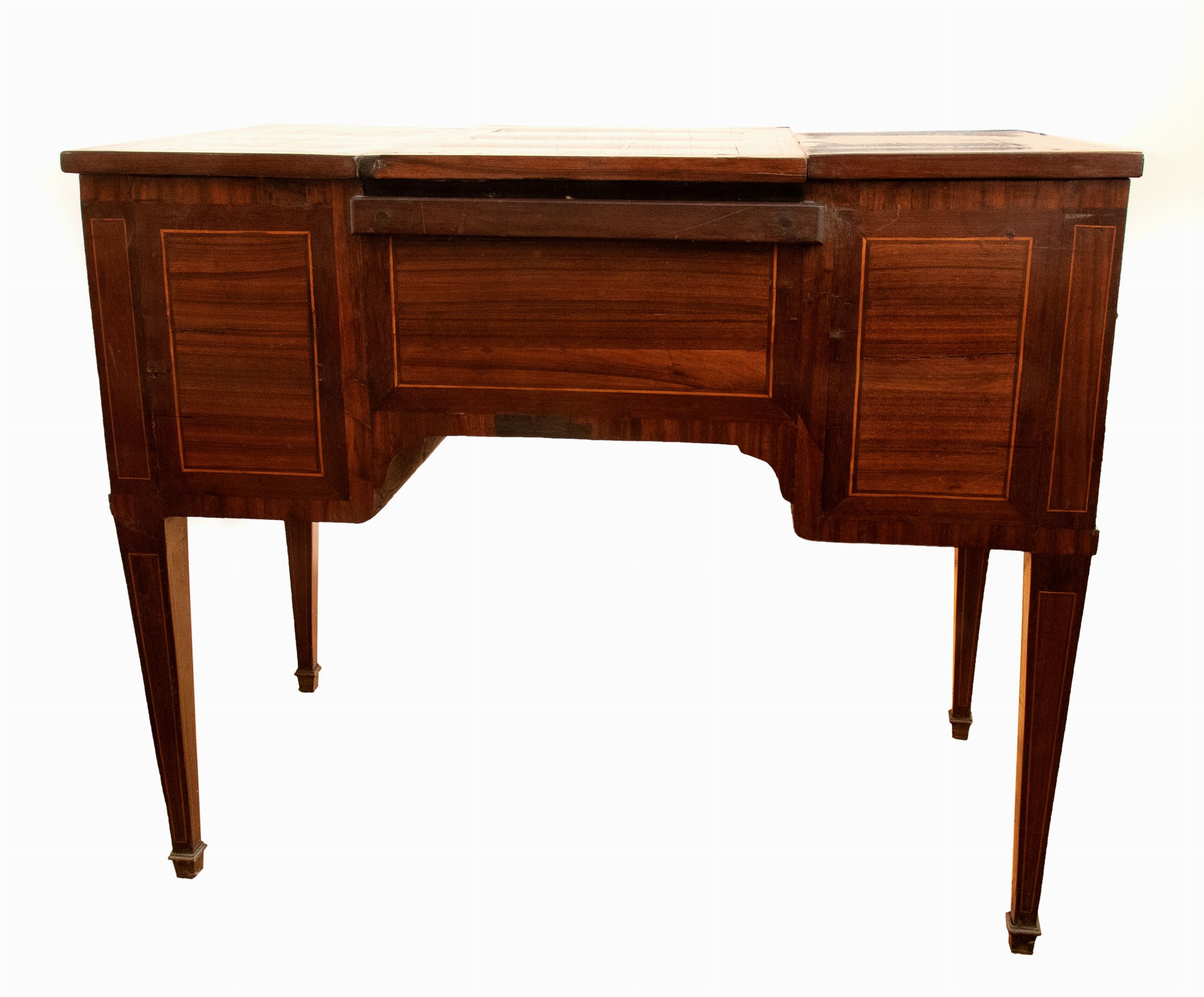 XVIII secolo lastronata in ebano viola, palissandro e intarsiata in legni di frutto.