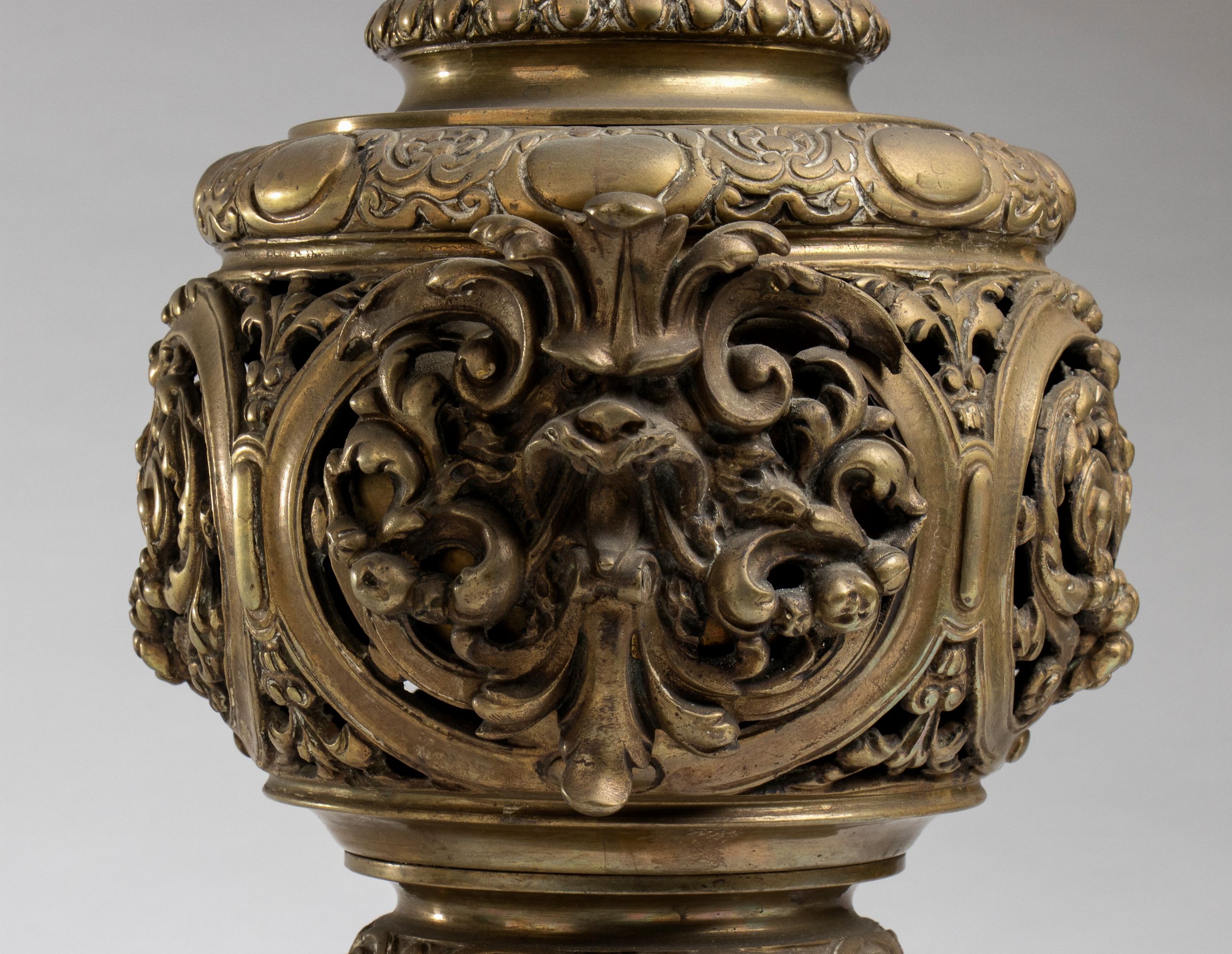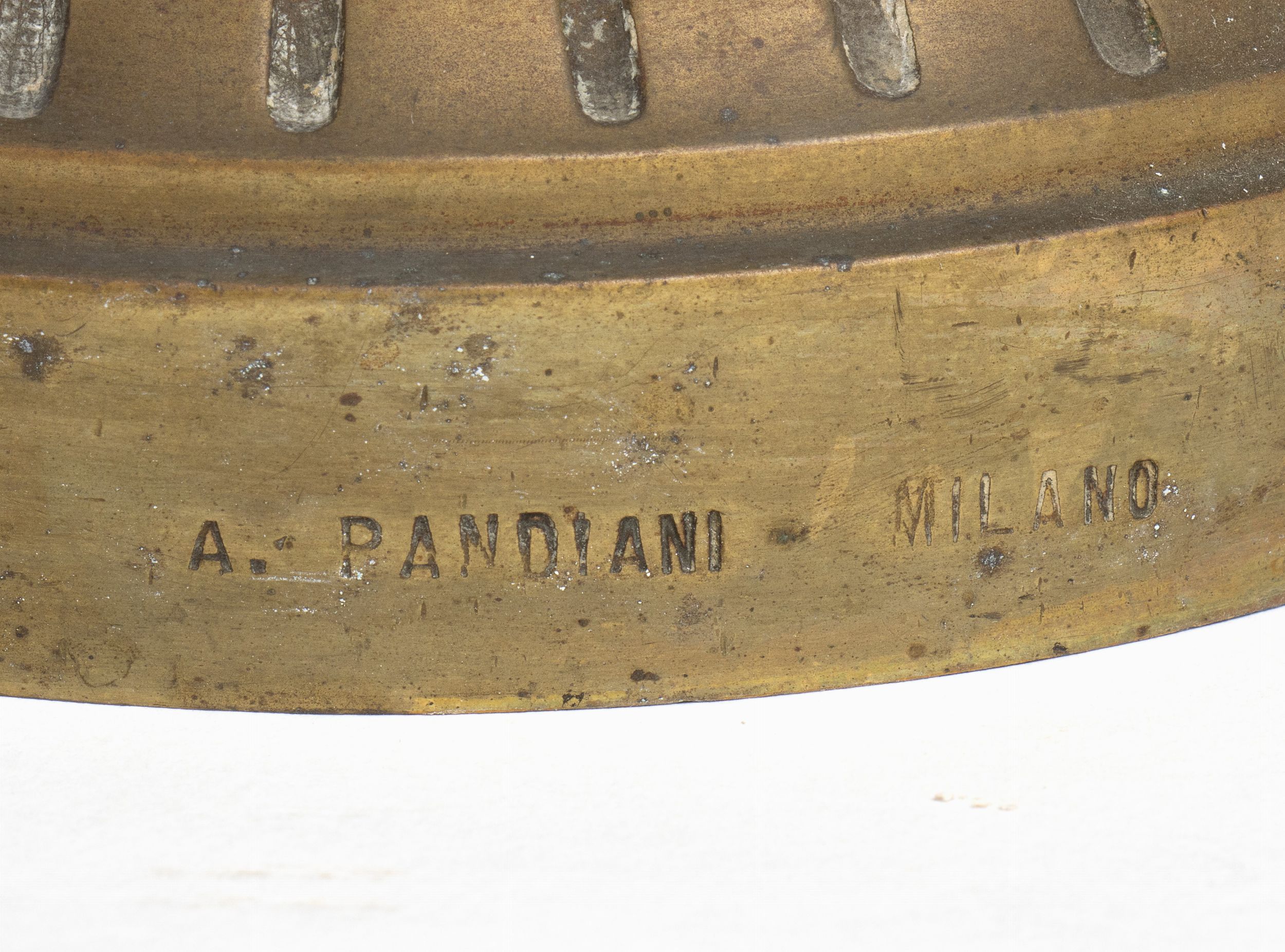 Inizio XX secolo in ottone, composto da due brocche ed una vasca decorati in stile rinascimentale. Firmato sul basamento 'A Pandiani Milano'.