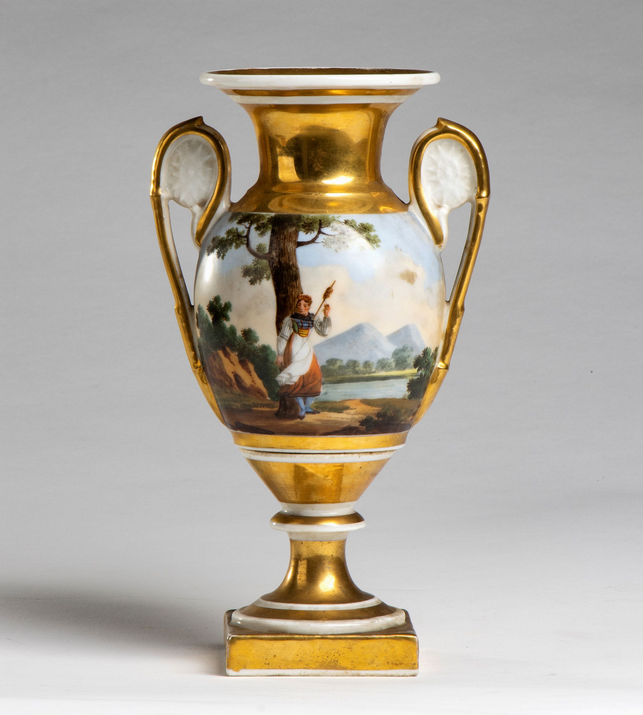 XIX secolo dorato e dipinto con scene di vita quotidiana