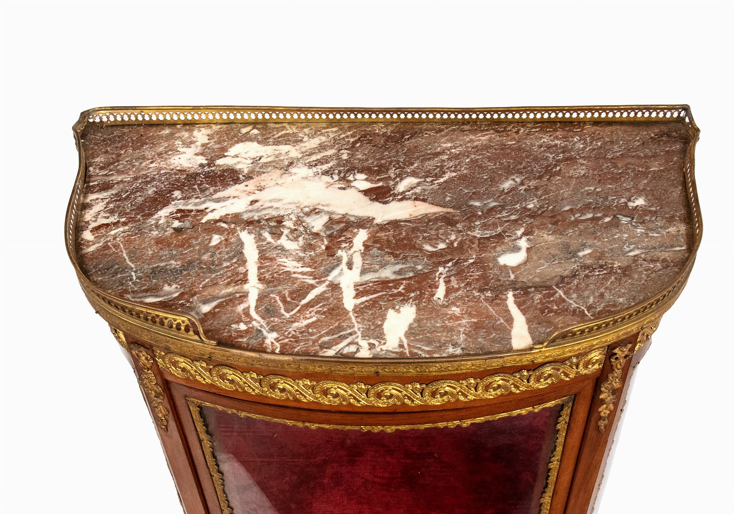 XVIII secolo in legno di mogano di forma sagomata, con applicazioni in bronzo dorato e piano in marmo rosso Francia.