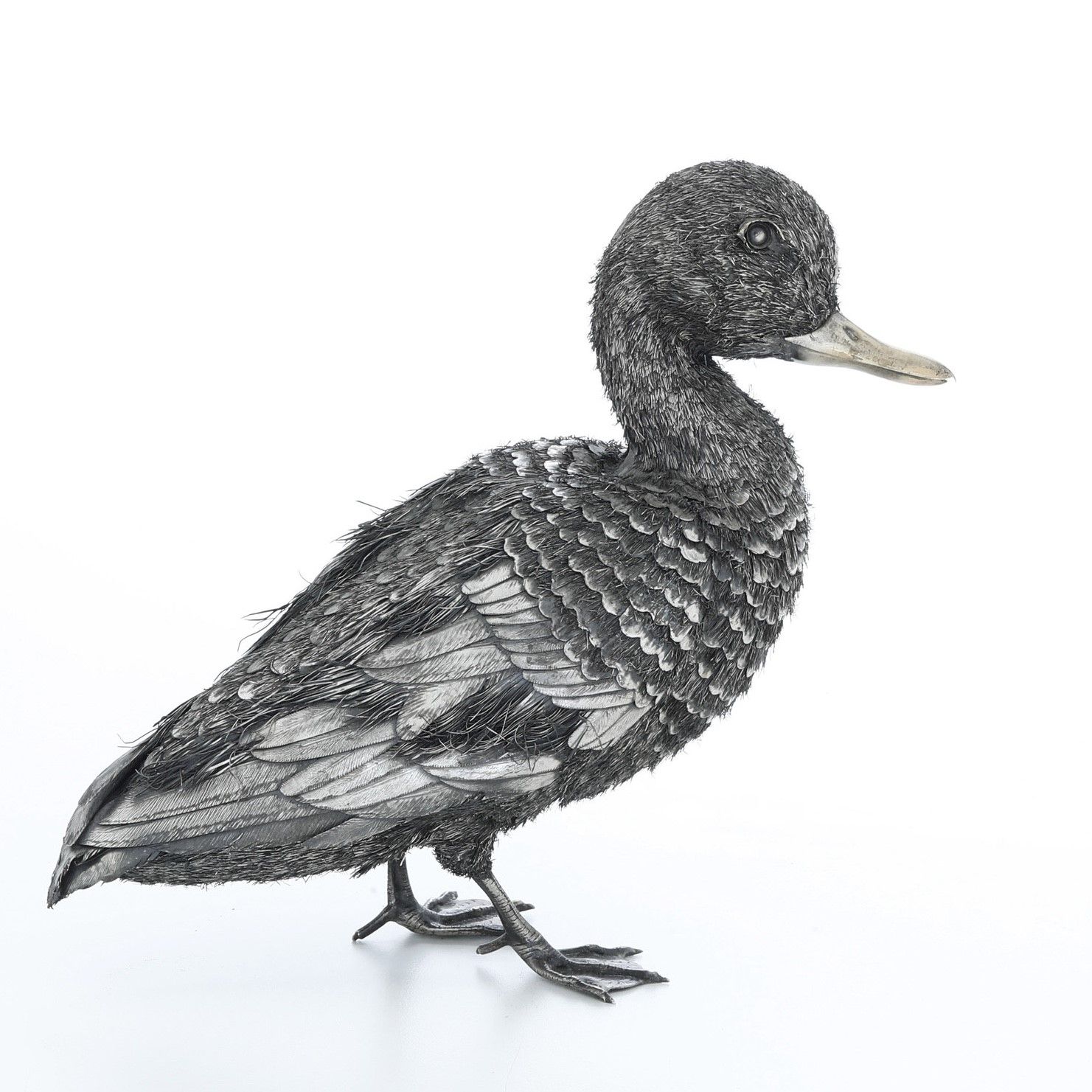Anatra in argento. Italia XX secolo, incisa inscrizione M. Buccellati