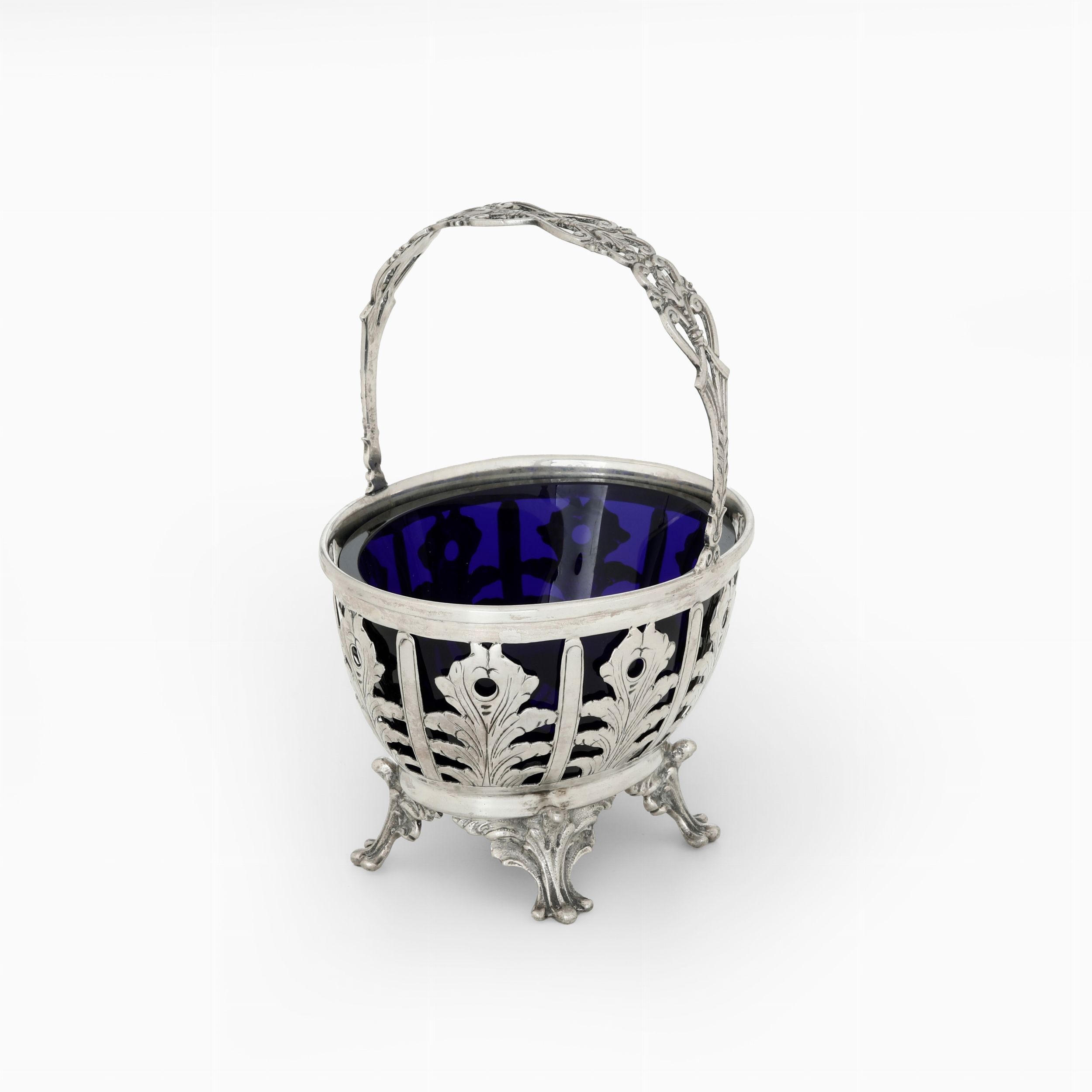 Cestino con ciotola in vetro blu cobalto, apparentemente privo di punzonatura, Europa [..]