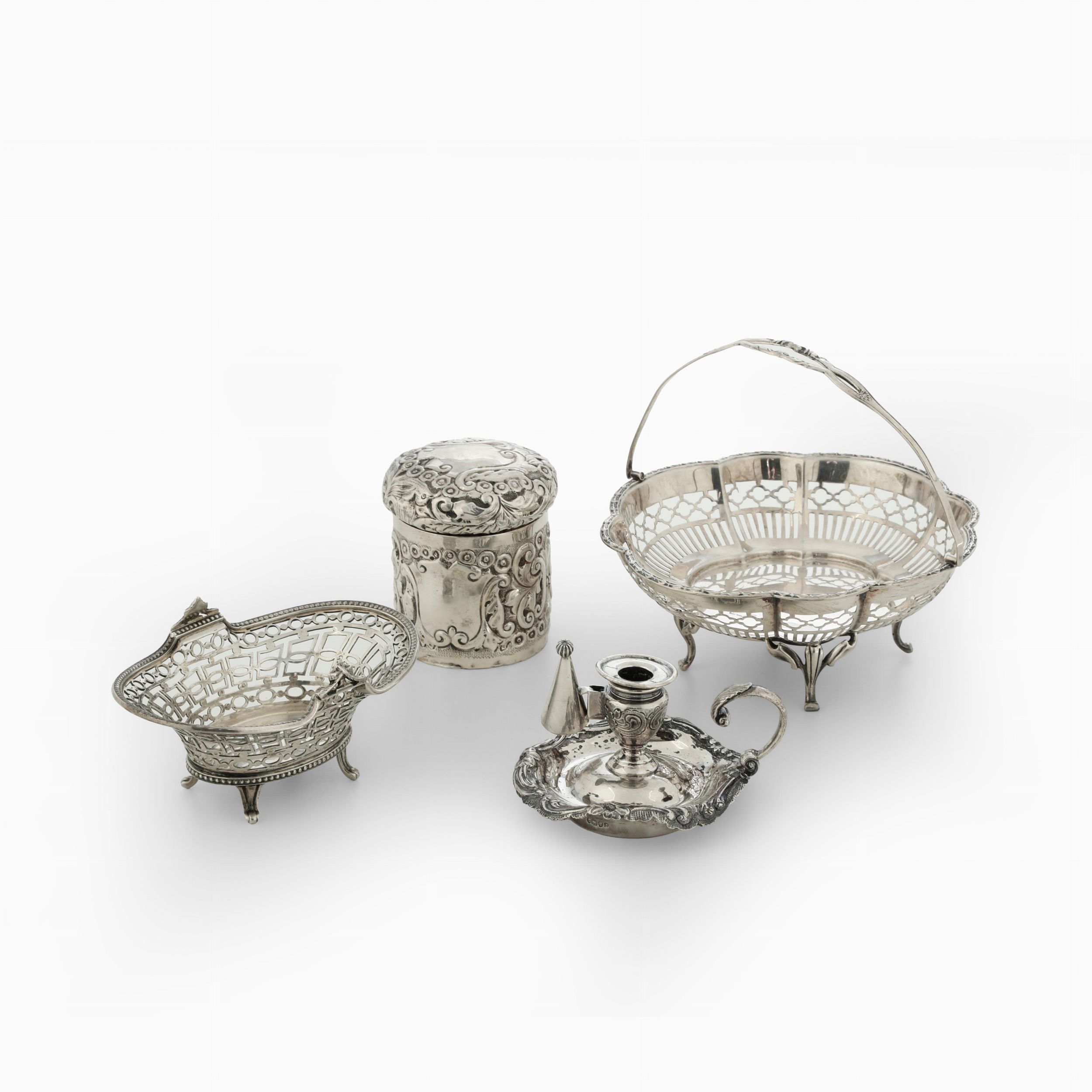 Lotto composto da cestino tondo, cestino ovale scatolina e bugia, Inghilterra XIX-XX [..]
