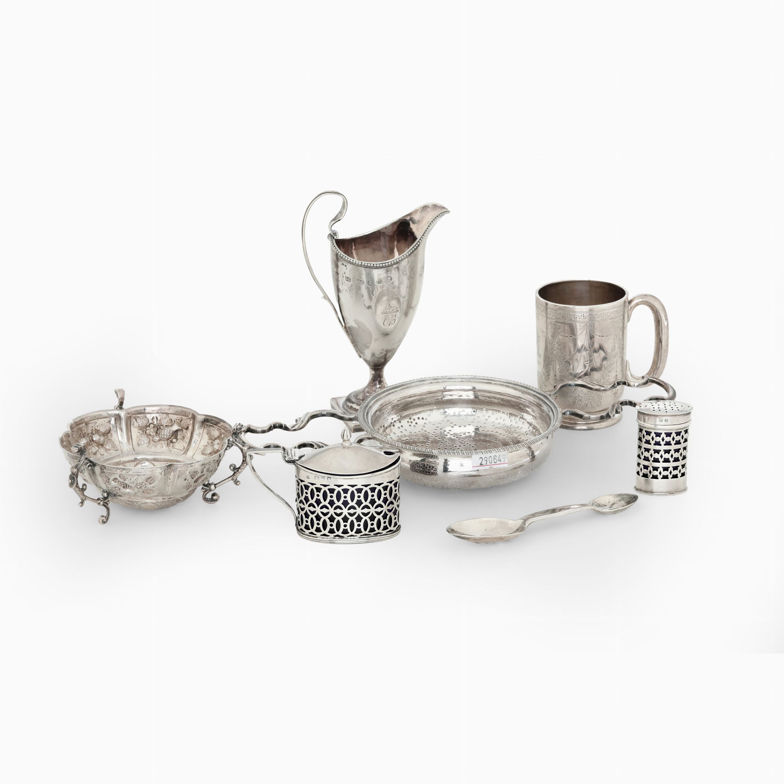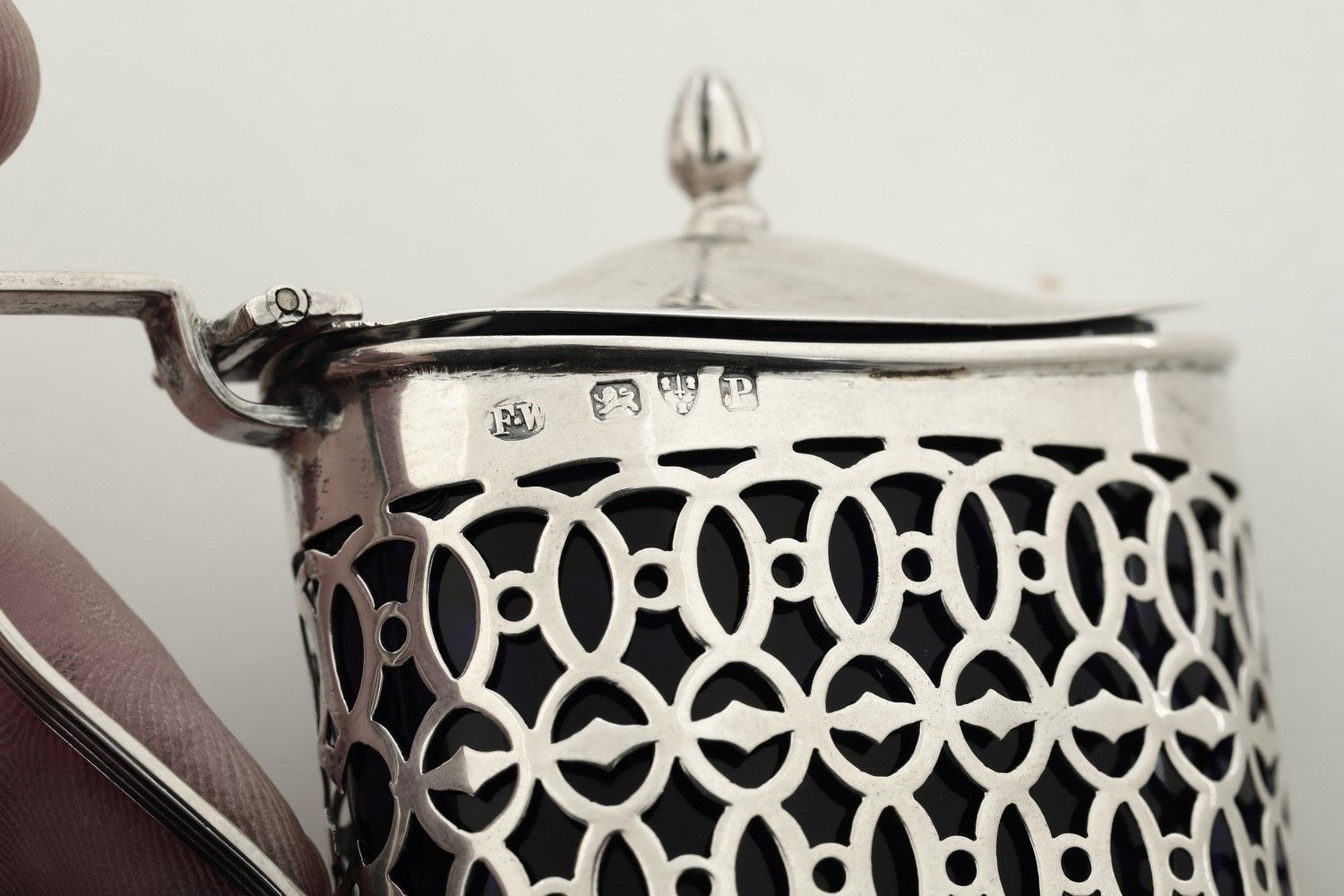 Lotto composto da colino, doppio cucchiaio, coppetta, mostardiera con vetro blu, [..]