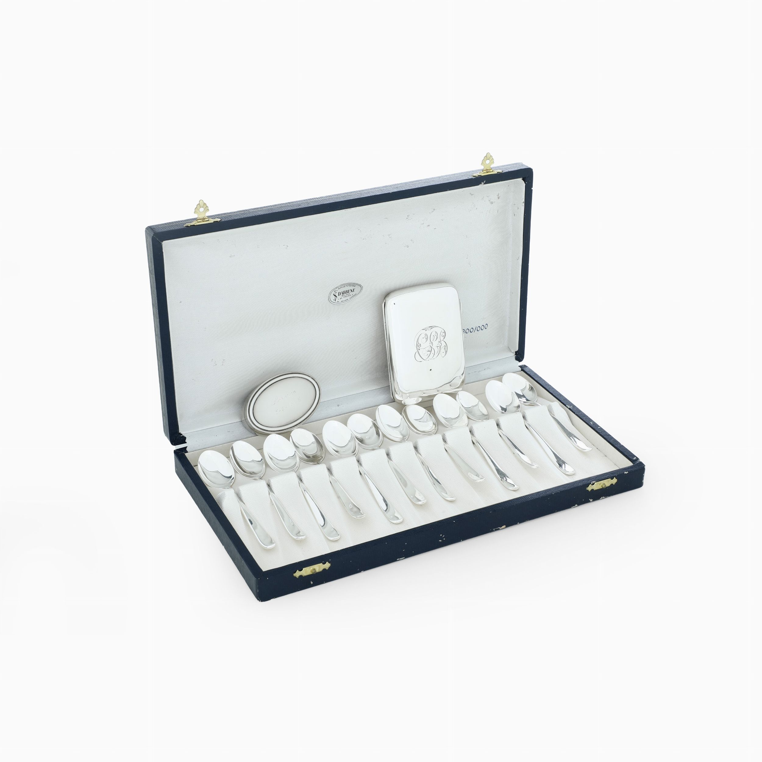 Lotto composto da servizio da 12 cucchiaini in argento e due scatoline. Italia e [..]