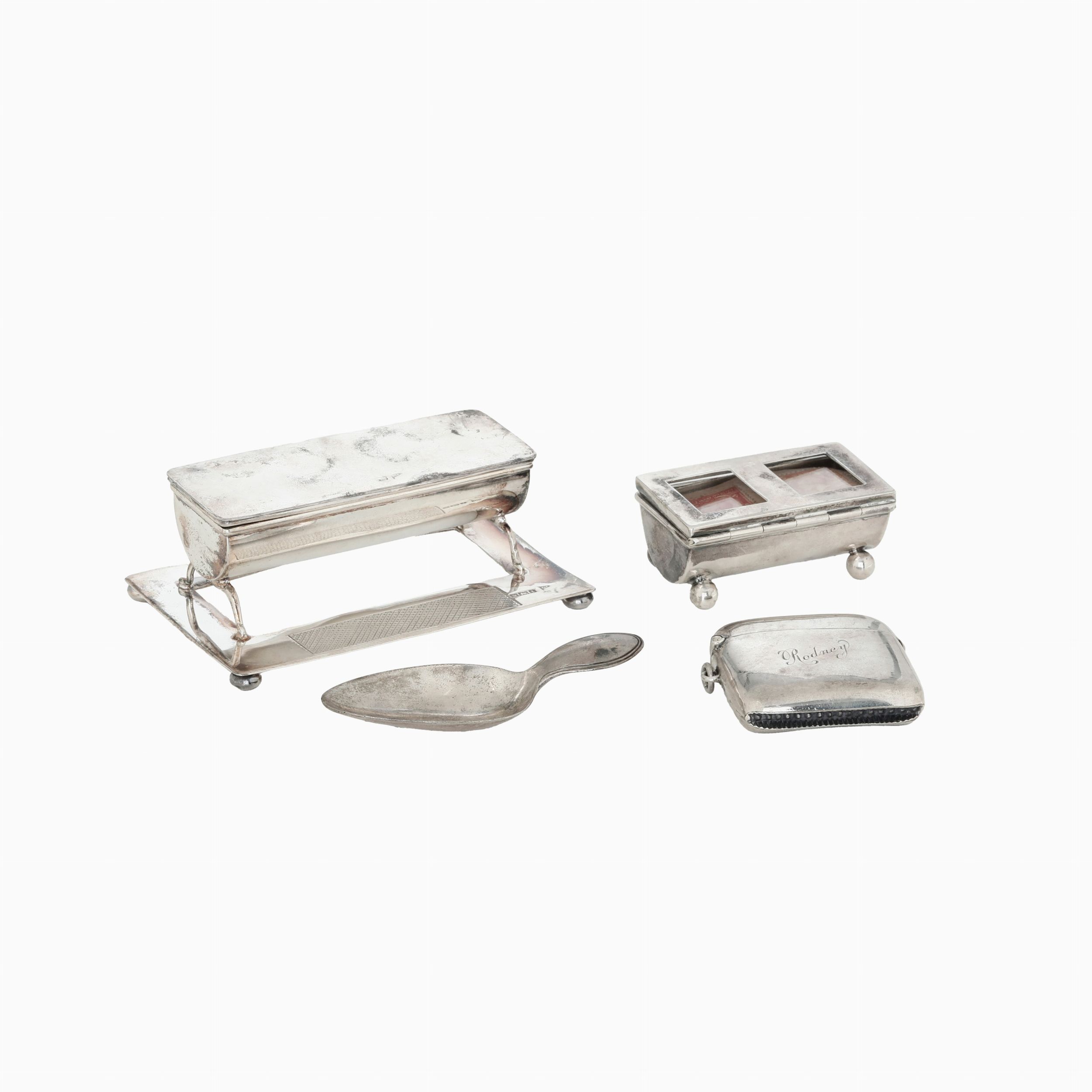 Lotto comprendente cucchiaino, portafiammiferi, portafrancobolli, portafiammiferi [..]