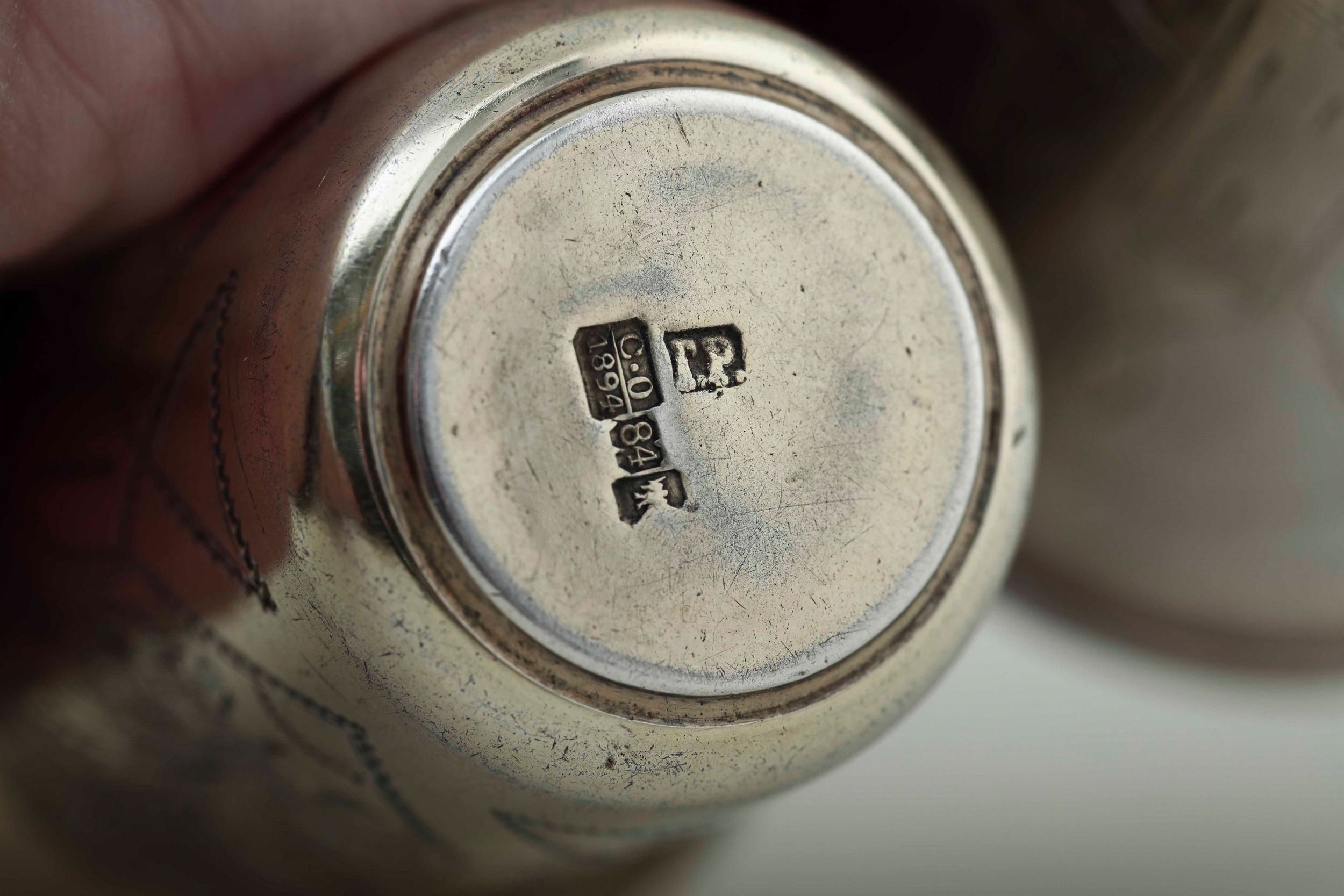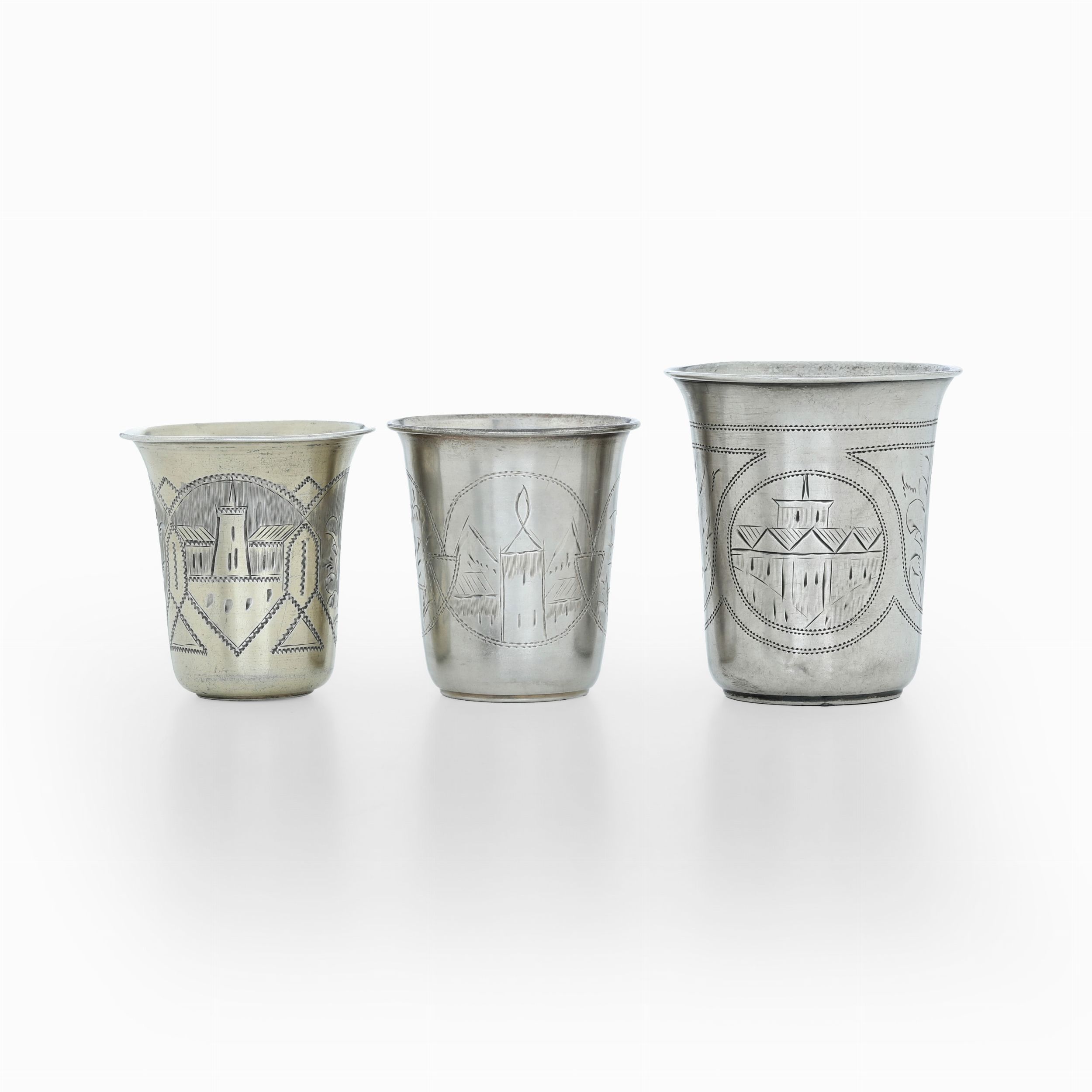 Tre bicchieri, Argento fuso, sbalzato e cesellato. Russia fine XIX secolo, differenti [..]