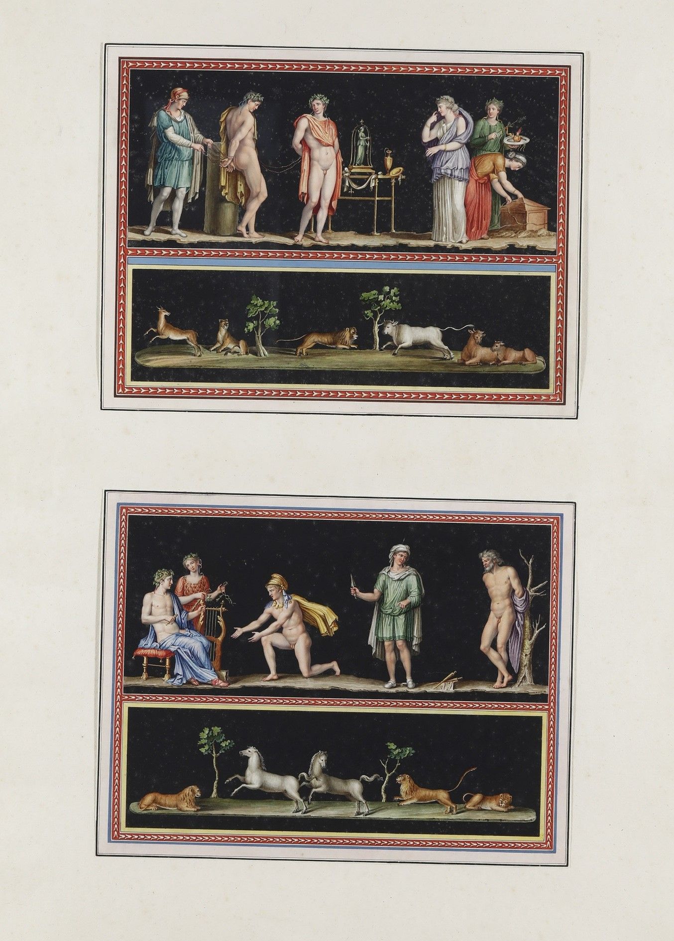quattro gouaches su carta, Largh. 47 - Alt. 36 cm