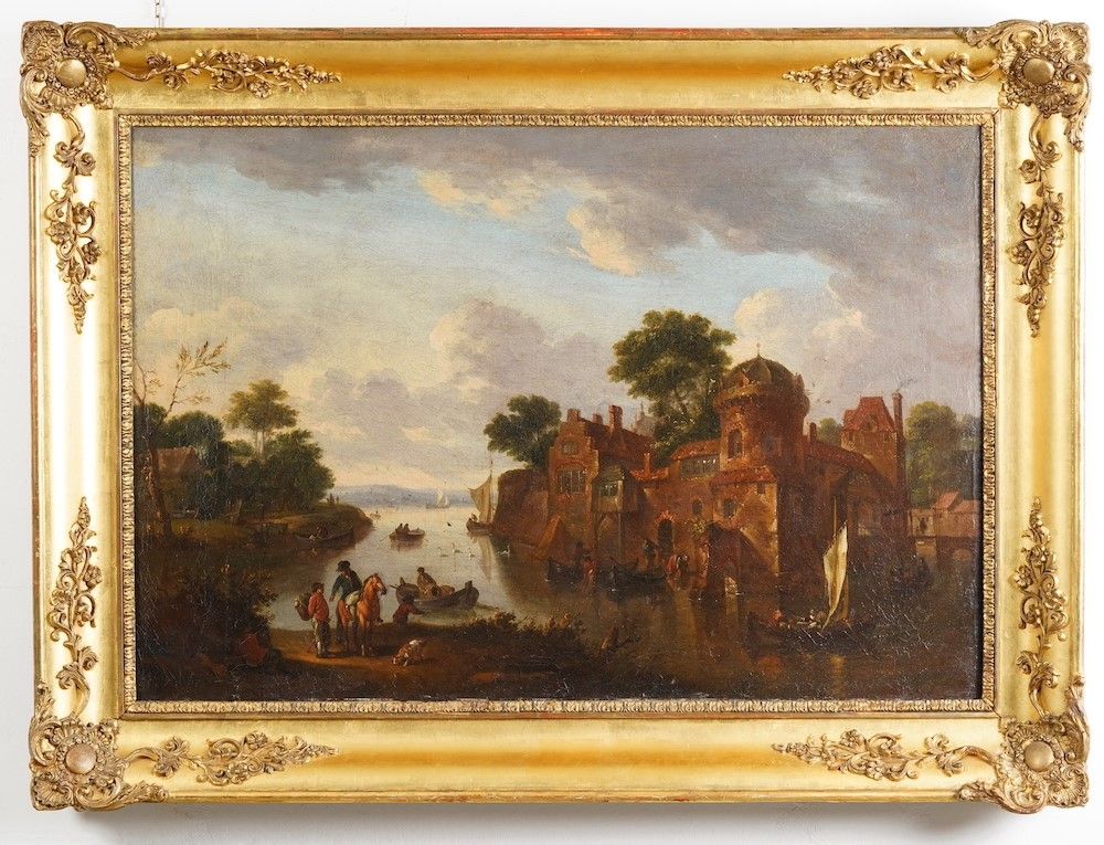 Paesaggio fluviale con contadini