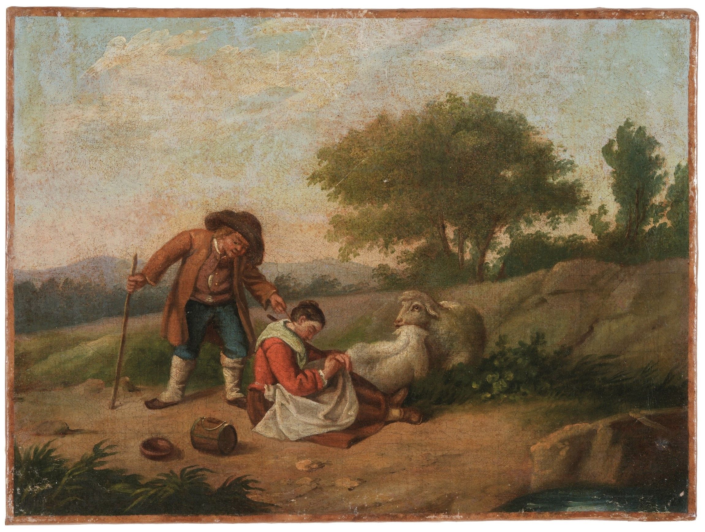 Scuola del XIX secolo Paesaggio con pastori e armenti