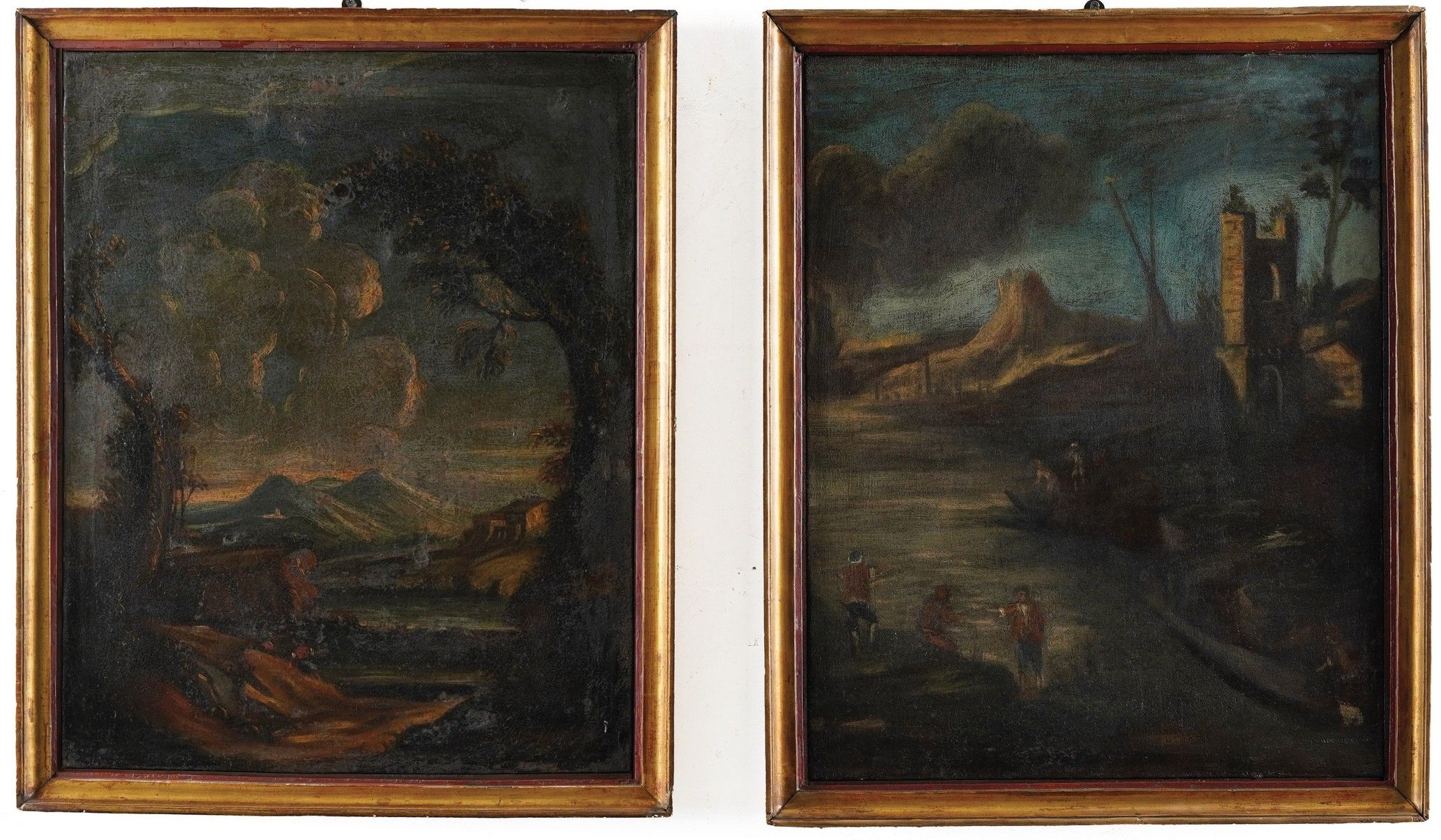 Scuola del XVIII/XIX secolo Paesaggi con figure e architetture